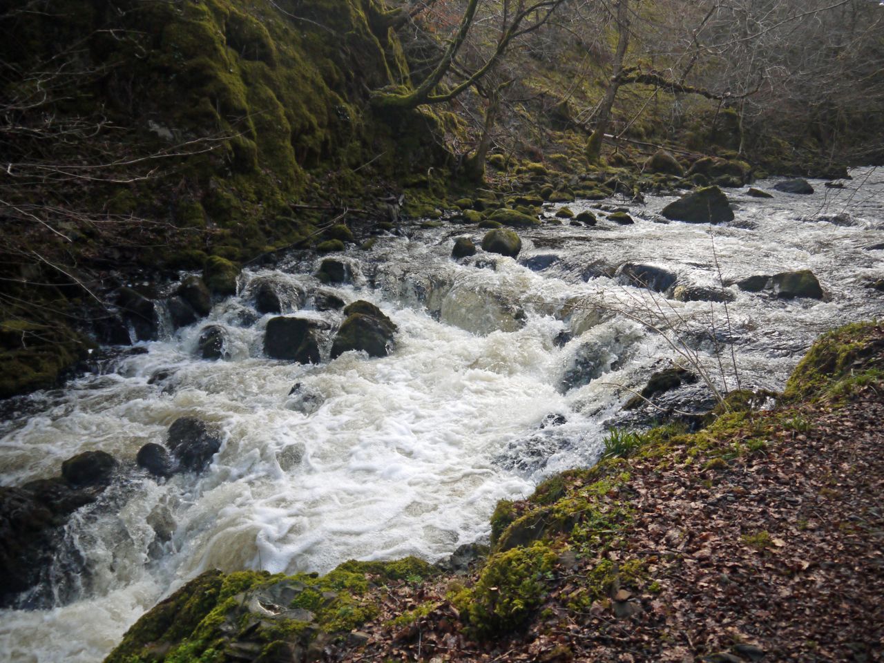 The dogs had a paddle in the river, Sweep showing himself to be more adventurous in the water than Eddie, but the water was too full for the humans to easily reach the other side. I had intended crossing the river here and walking along the forestry tracks of the far side so we needed a change of plan.