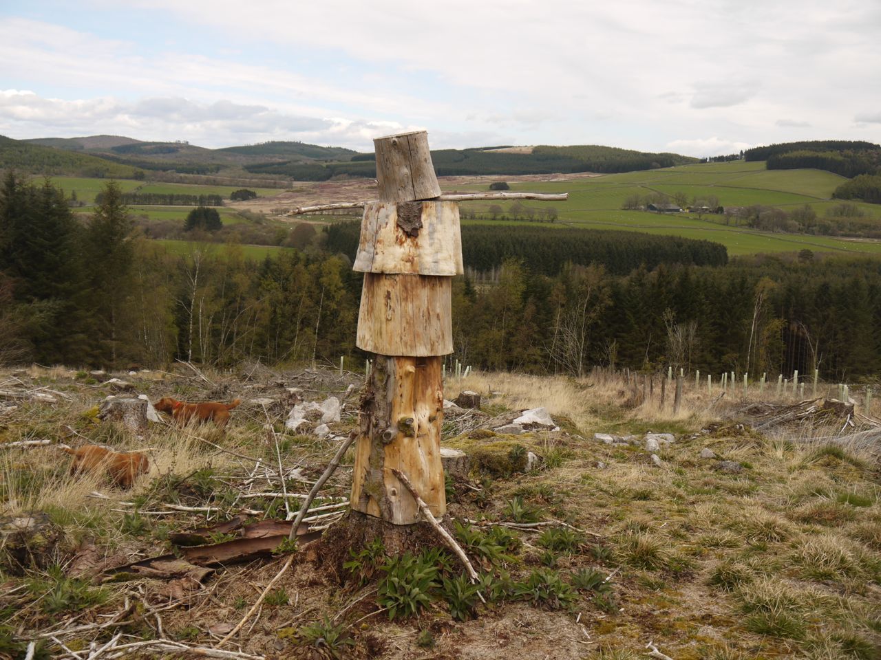 We began in the car park among the pines by Clatteringshaws Loch. Audrey drew my attention to the hollow sound of our footsteps on the forest floor. I hadn’t noticed it but she was right. I could hear a hollow timbre to both her footsteps and those of the dogs, but not my own, though I could feel the quality of the ground as I walked. I don’t think I am particularly light footed so this must represent some form of filter in my perception.