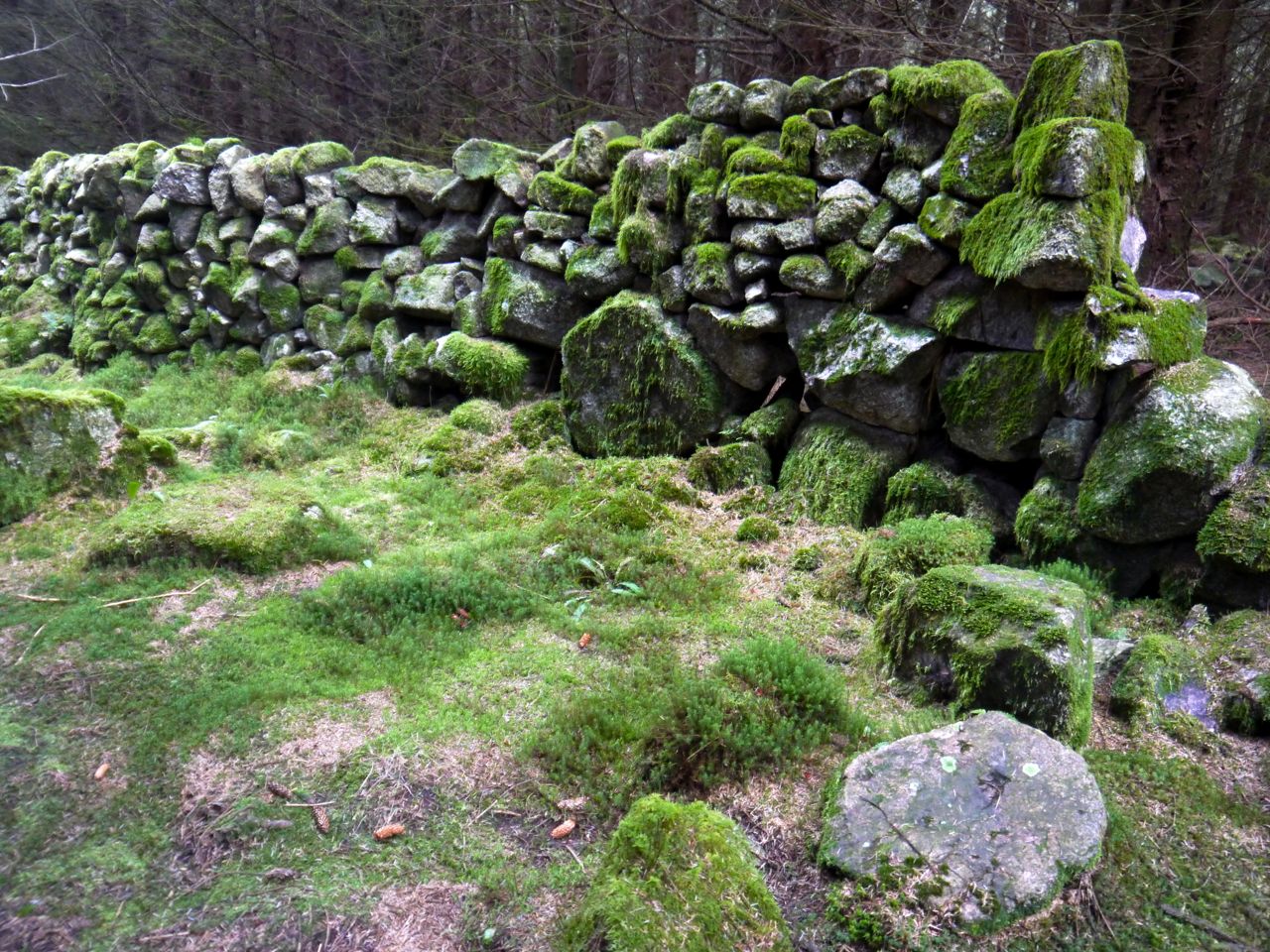 Bruce’s Stone sits at the end of the footpath. Bruce is said to have rested here after his victory over the English on Raploch Moss in 1307. This natural granite boulder stands perhaps 150m from the waters of Clatterringshaws Loch but would at the time of the battle have overlooked the moorland of Raploch Moss. This extensive moor then lay between the Black Water of Dee, Clatteringshaws Lane and Benniguinea, but was flooded to create Clatteringshaws Loch as a reservoir with the construction of a dam in 1932-34.