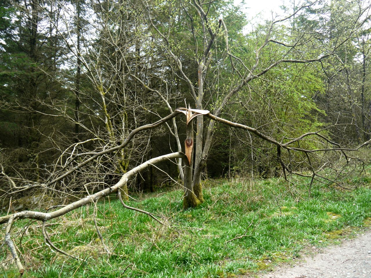 The path ran through a cutting with moss covered rock walls overhung by trees in full leaf. A willow had fallen from its perch at the top of one section but must have either been left with some intact roots or re-rooted itself in the rock, and despite lying below the canopy, shoots grew from the fallen trunk, their leaves making use of the remaining light.