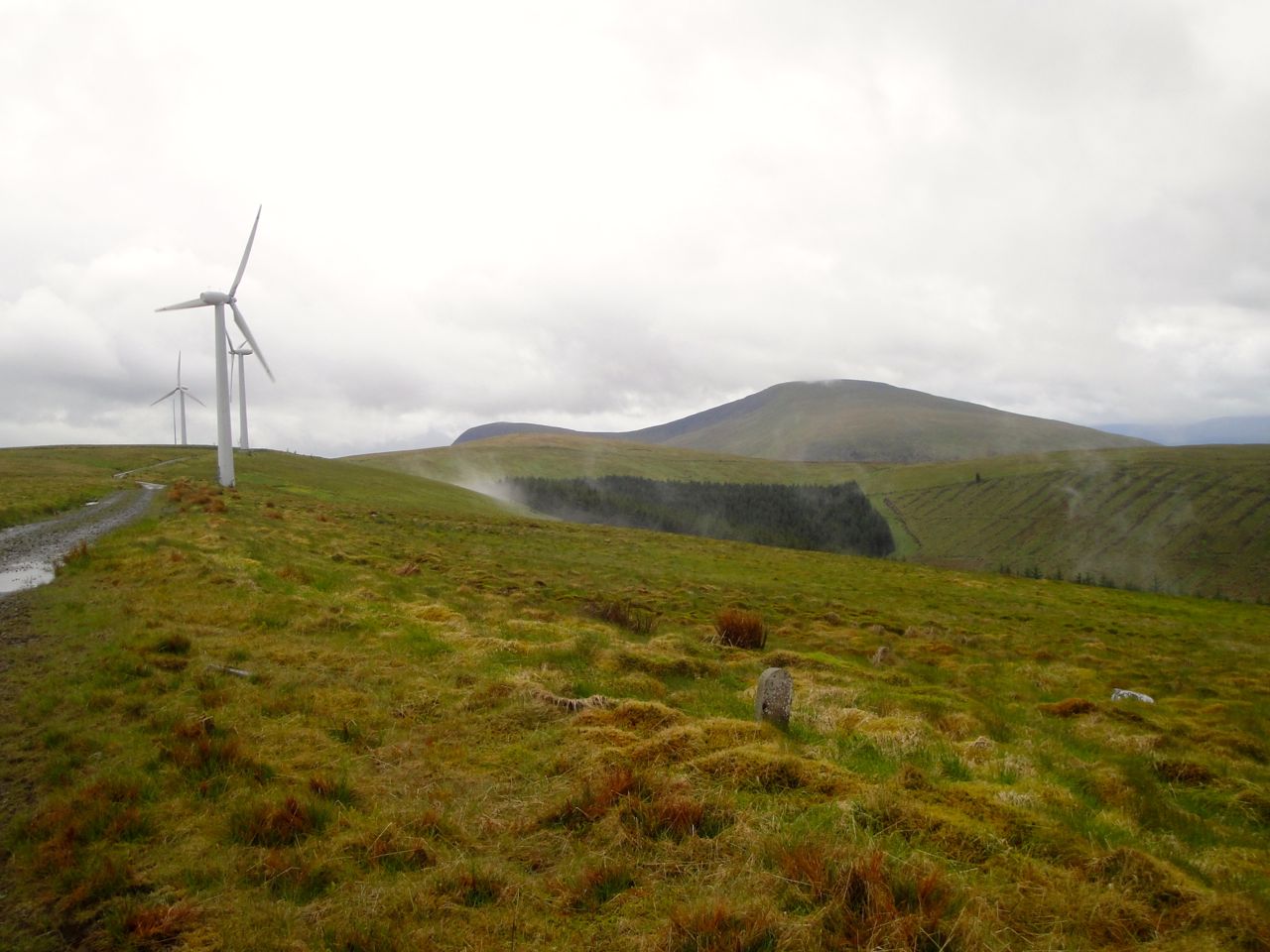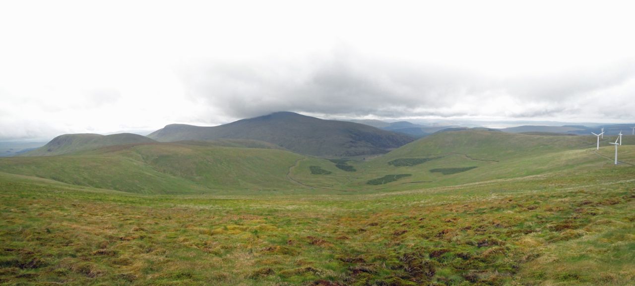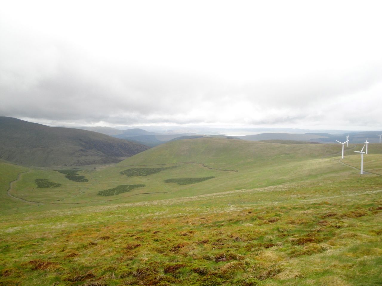 Once at the turbines I made use of the service roads and the steps of one turbine were my seat for a slightly early elevenses. I sat there in the rain musing on my summer attire of full waterproofs, multiple layers, wooly hat and gloves. The Southern Uplands summer collection.