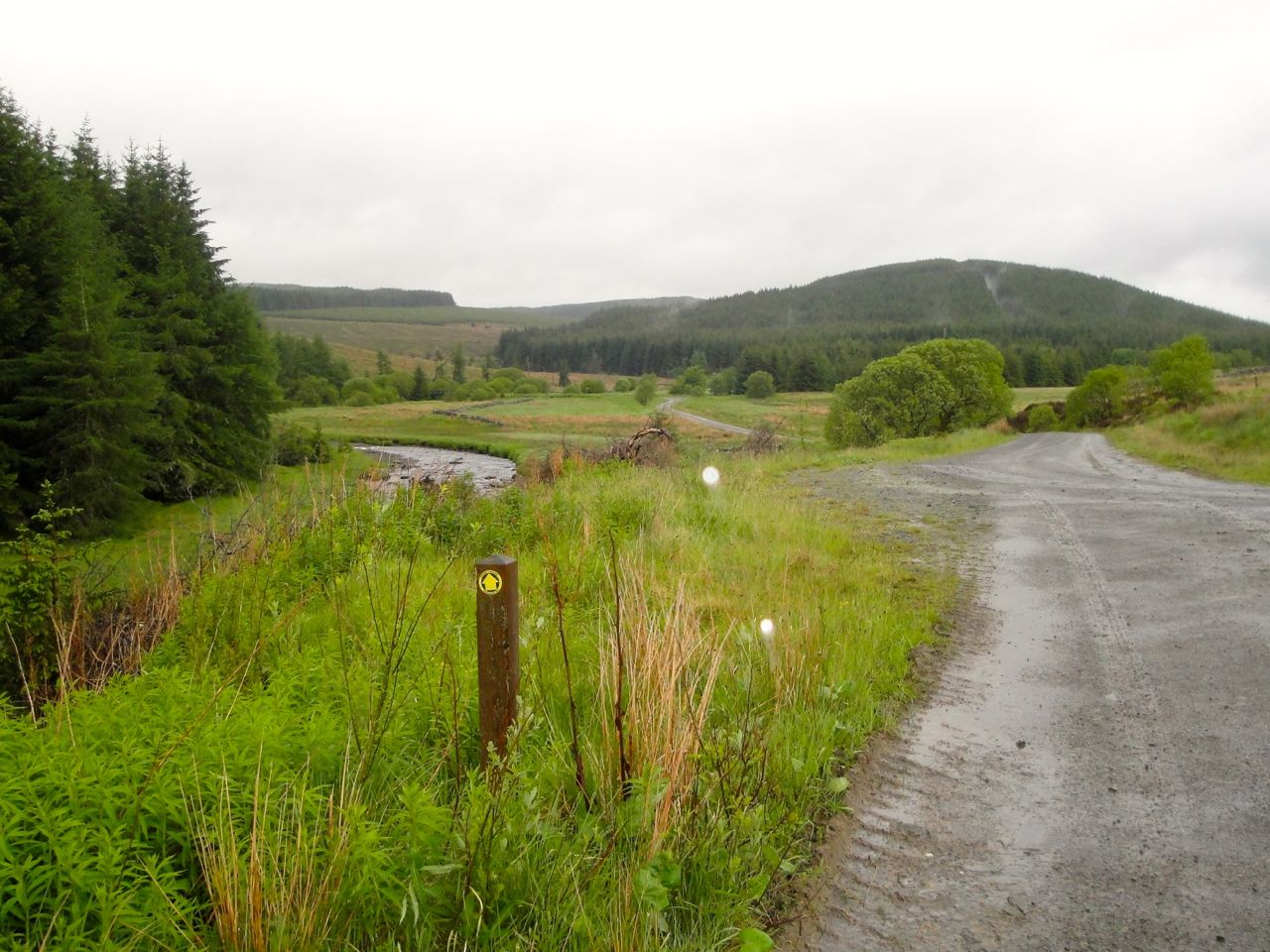 This could be a pleasant walk if not for the final couple of miles. It would probably be better to continue on the forestry tracks and cross the Water of Deugh at the next bridge, at Waterhead, an extra hour or so walking.