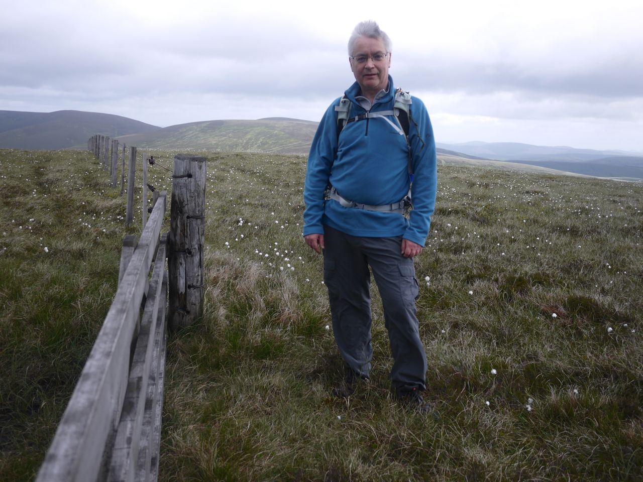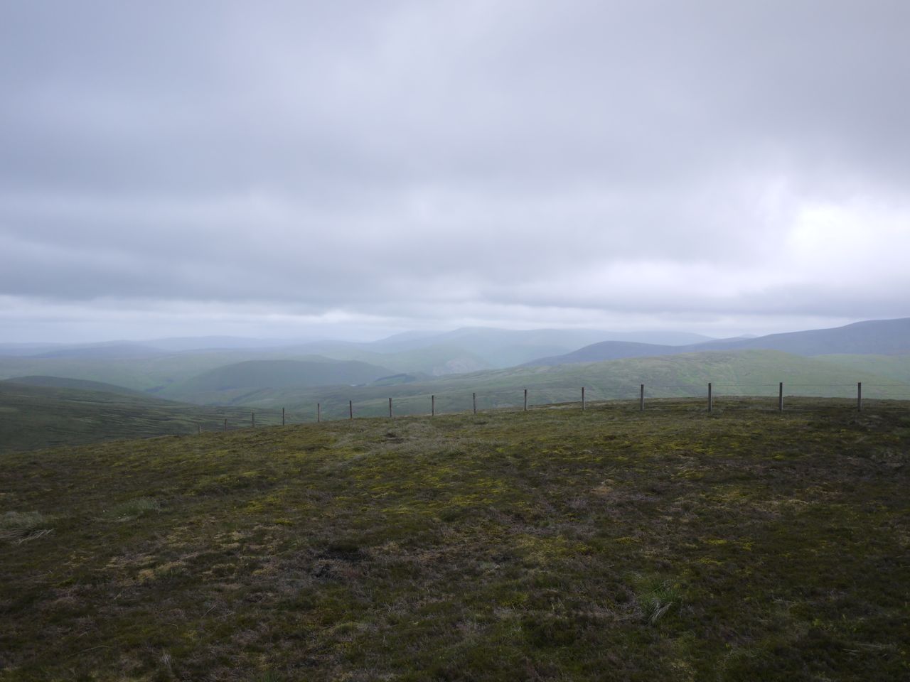 Black Cleuch Hill, my main target for the day, did not have a definite top so I did my usual wandering about visiting areas that looked higher until I got there and looked back. If I’m ever found collapsed on a hill, the forensics people will review my GPS log and think I had just lost my mind. It would show me walking directly up a hill and then wandering about apparently aimlessly at the top. Amongst the boggy moorland there was not a firm seat to be had for a break so I set off to White Cleuch Hill following the line of the fence where the ground allowed. Coming back I did try the other side of the fence hoping it would be less soggy but neither side was better than the other.