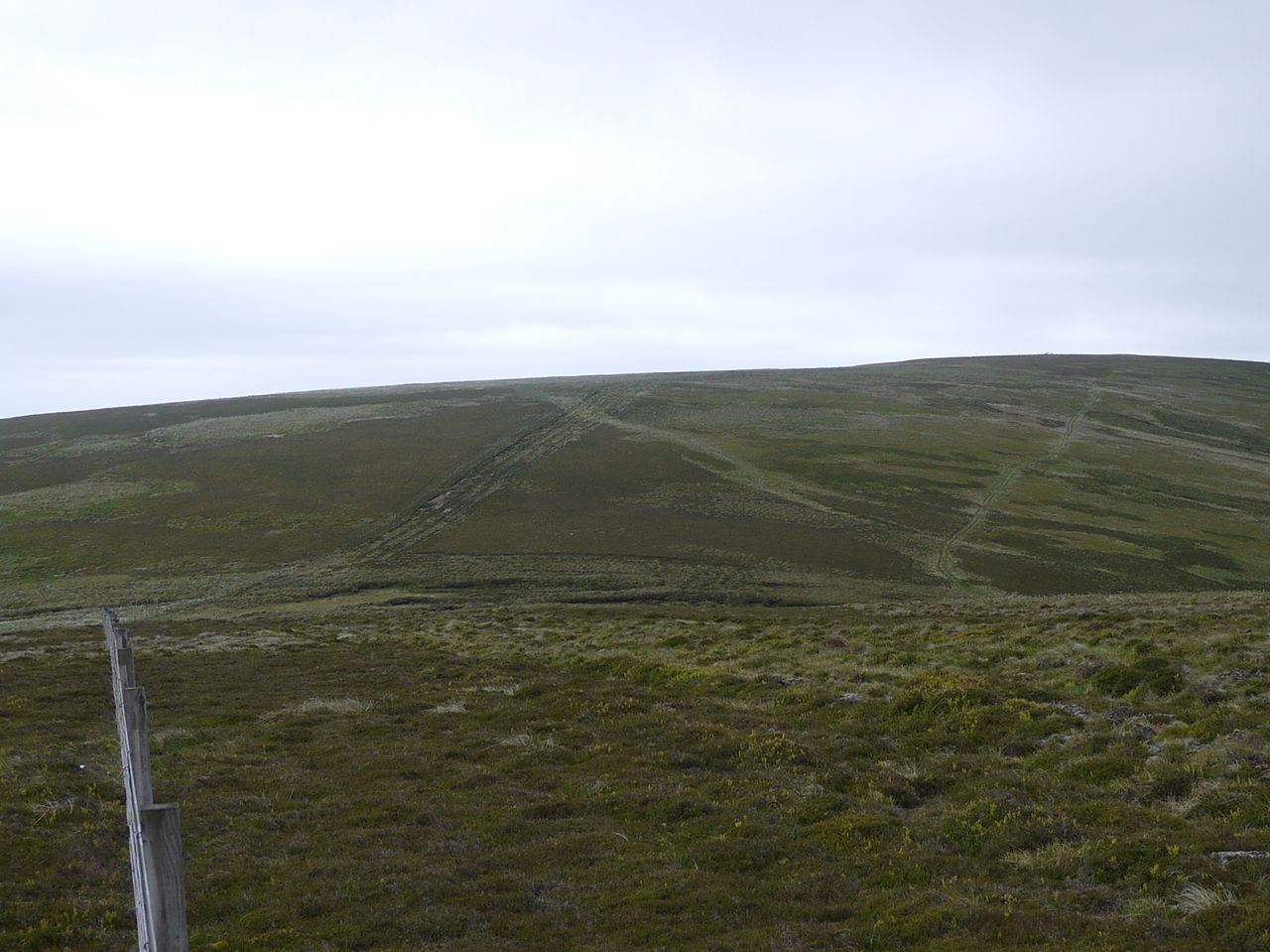 On the way up I passed a couple of cairns, at about 470m and 5oom, and can’t think why they were there. A little beyond the top of Langhaugh Hill I picked up a faint track that I followed up Waddyside Rig. I call it a track but it was really a gap in the heather where grass fought with sphagnum moss for supremacy. The grass was losing the battle and several sections required diversions around some particularly boggy areas. The track ran below the top of the ridge and by the looks of it contoured round onto Black Law. Since it did not turn towards Black Cleuch Hill, I left it to join the dilapidated fence to Black Cleuch Hill.