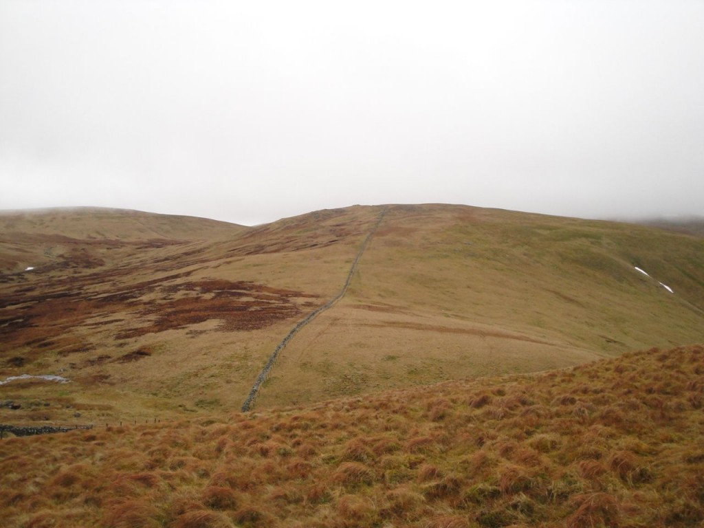 Ellers Cleuch Rig looks rather unimpressive from Garelet Dod, but is more imposing from the south. A steep dip across the upper part of Ellers Cleuch marked a change from the grassy smooth slopes of Garelet Dod to the rocky outcrops of Din Law.