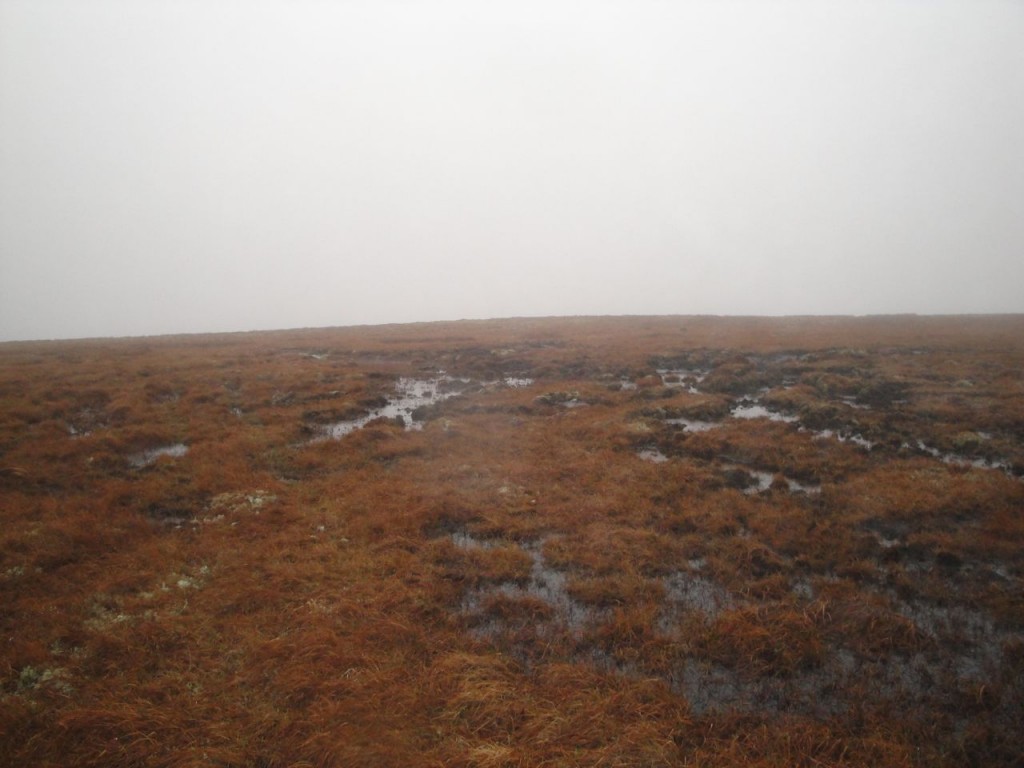 Garelet Dod’s summit plateau is a bog with several low grassy mounds rising up as contenders for summit status. I gave up taking photos of each one when the rain got heavier and my fingers were growing numb. The most promising summit candidate had a track leading over it.