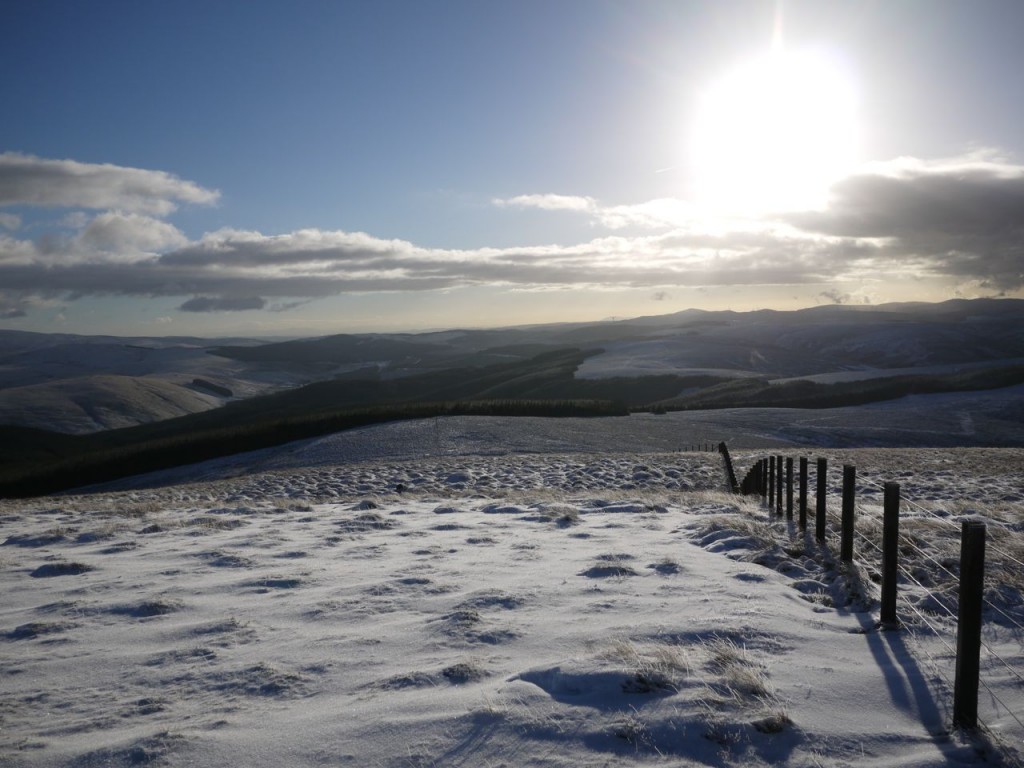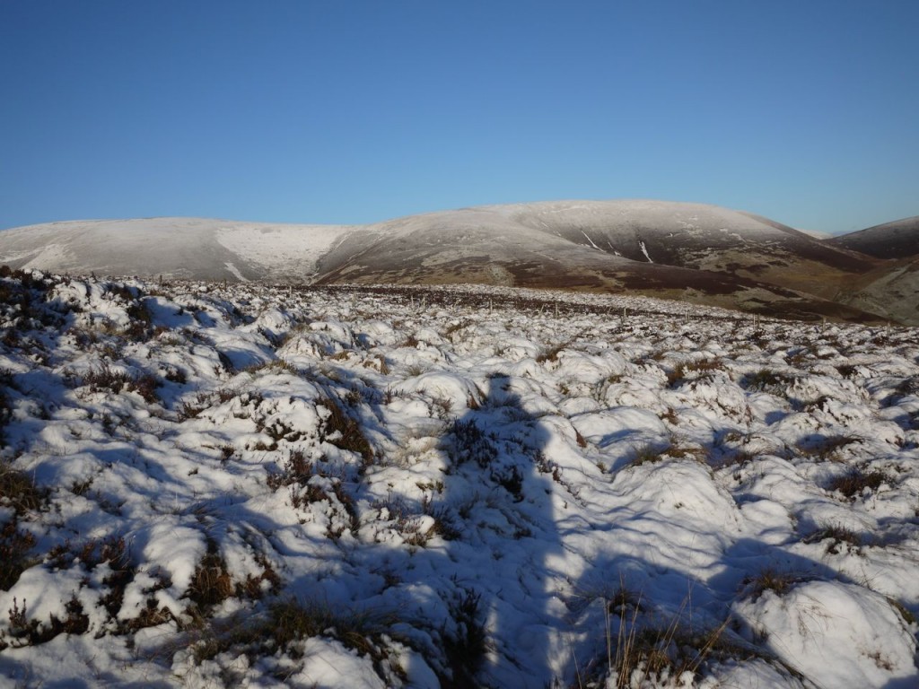 Without doubt, the most tiring section of this walk is that over Glenwhappen Dod and White Knowe Head above the forest. There was deep heather covered in snow. This was like the section in assault courses where you have to step over ropes, but in addition every now and then the ground would prove lower than expected. I feel pleased with myself that I only actually fell over once.
