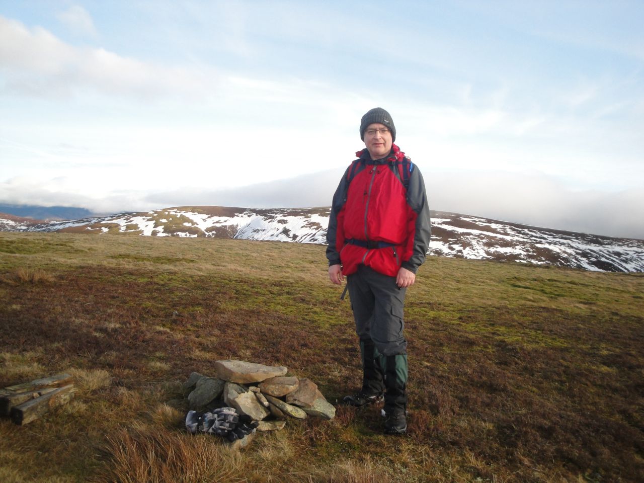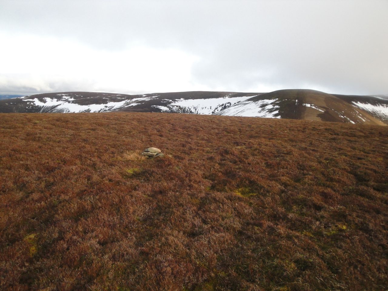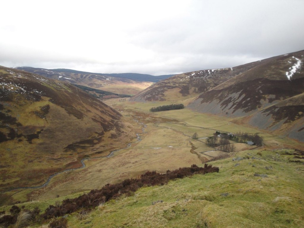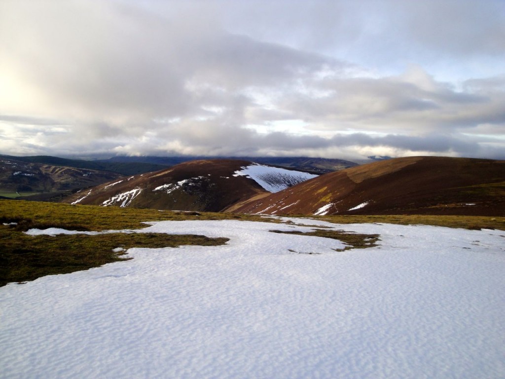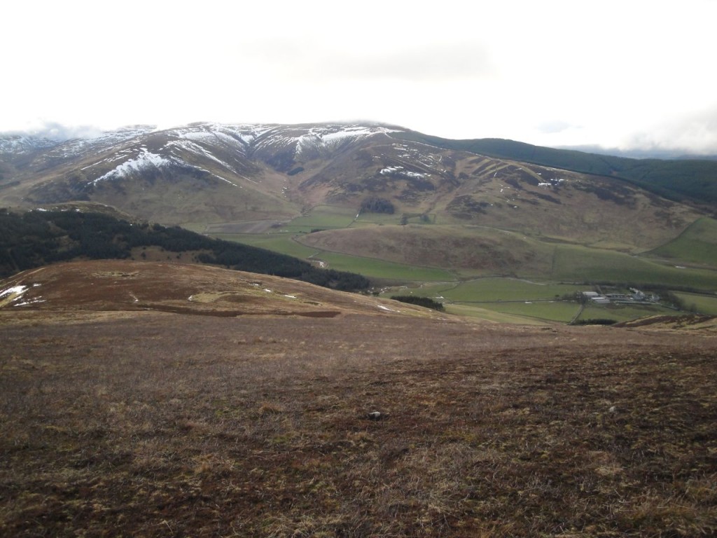 The first half hour was spent warming up along the track to Glenrathope. Back Burn was full to brimming with melt water from the previous week’s snow so the bridge at Glenrathope was a welcome finding. I skirted the farm buildings, where there is a large solar panel, and headed up the stony zig-zag on Windy Neese, the firm footing making the climb easier.