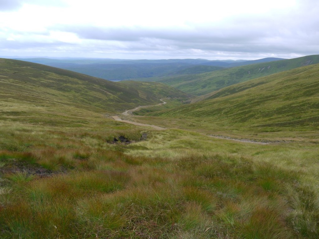 The soundtrack of this path is the sound of the Cramalt burn growing gradually louder as the burn grows in size. The colours are the purple and green of the heather and grass contrasted at times with the bright red of solitary rowan trees. The upper sections of the path are quite steep for a road and the stone covered surface gave my ankles a good workout. The hills to my right were those whose summits I had walked across just a few hours earlier.