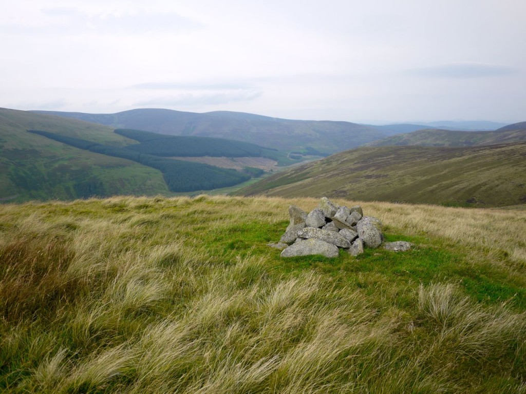 The rocky track crosses a couple of small streams and then ends with a ford over Cons Cleuch at a collection of sheep pens. From here I climbed up onto Deer Law, initially following a faint track but eventually toiling across pathless grass and heather, the ground growing boggier the higher I climbed. This was a typical convex hill where the horizon was always just a few metres away and the top only seen when you have almost reached it. The combination of the going underfoot and uncertainty about how far was left to climb proved quite tiring and I had several stops to admire the view back down the glen.