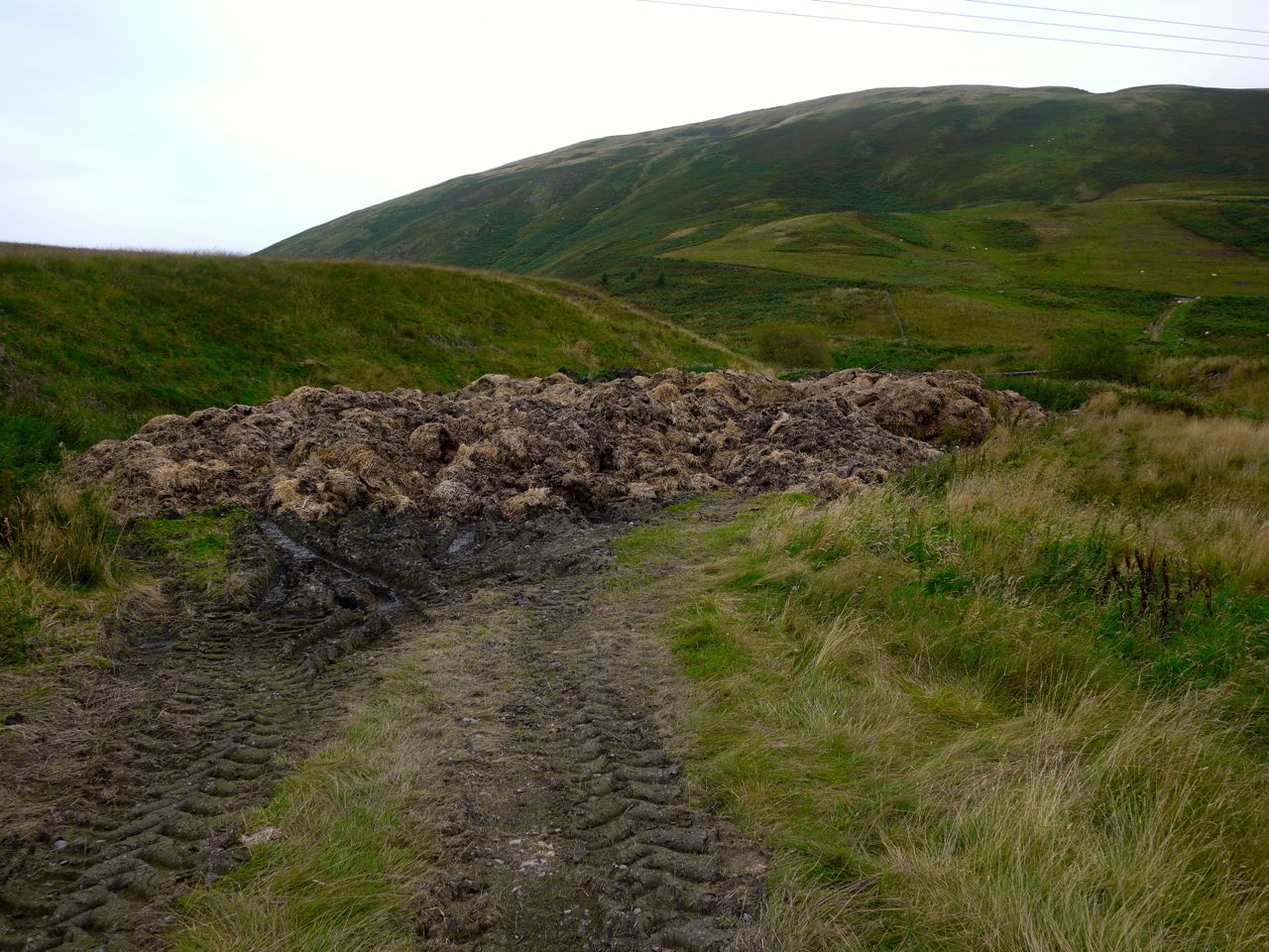 I parked at the Megget Dam and after standing for a while, amazed by the sheep grazing on its grassy slope, I set off downhill to Glengaber. There is a farm track just before the farmhouse which is completely blocked by a massive pile of manure, but luckily this isn’t the path to follow. The track around Broomy Law was visible from the road and easily reached by crossing a field at a gate a few metres past the house. The field here was neither boggy nor muddy and must have been magically transported from some distant paradise.