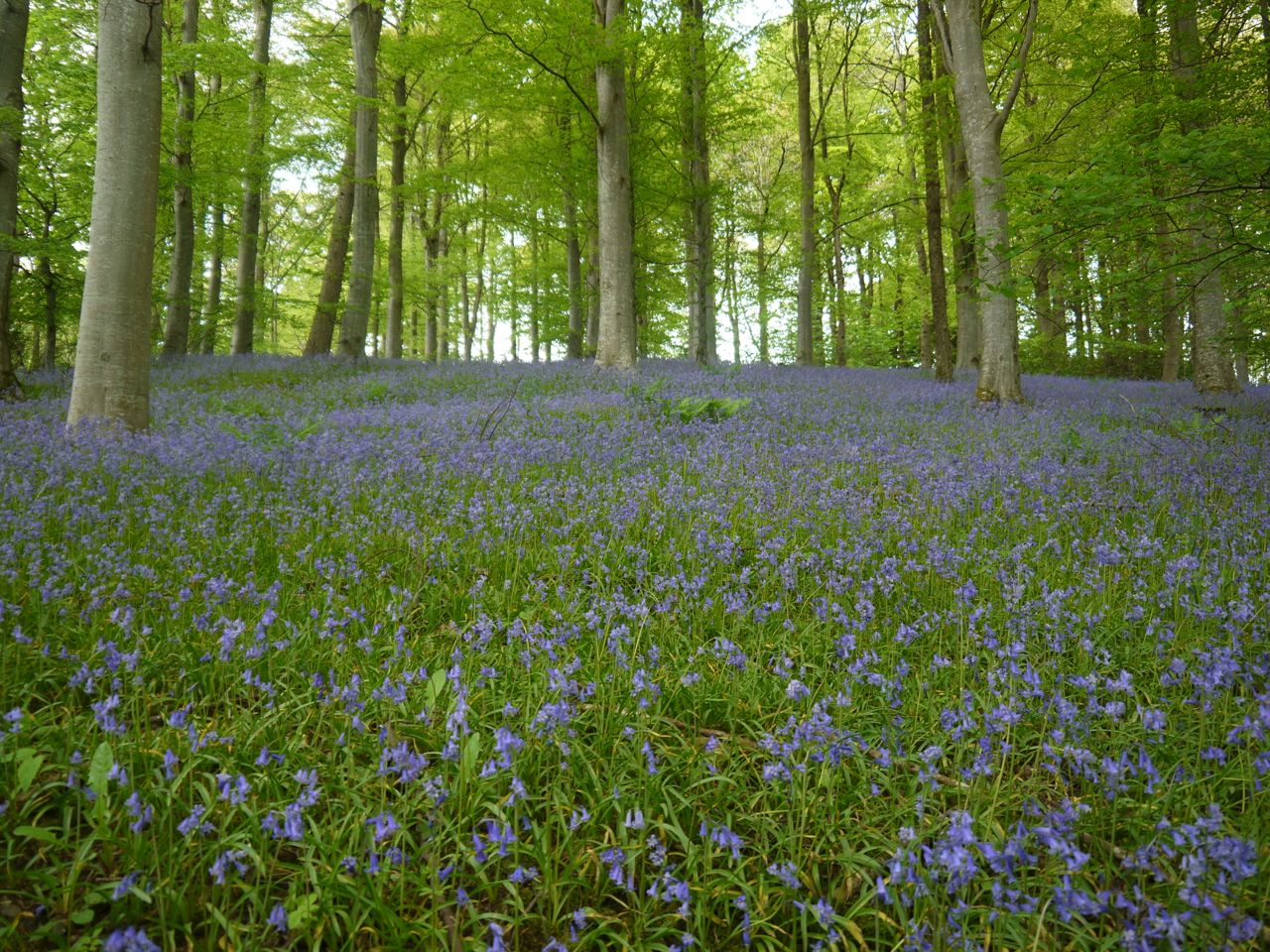 There is a gentle climb from the Tweed up Fairnilee Hill which seemed much steeper than it actually is. The woods here had fitted carpets of bluebells which gave us an excuse to stop and take photos. There was a well placed tree stump by the farm track, and it seemed ideal for a brief sit down while I had a sip of water. But no sooner had I got myself comfy then we realised there were ants all over it, so the rest was cut short.