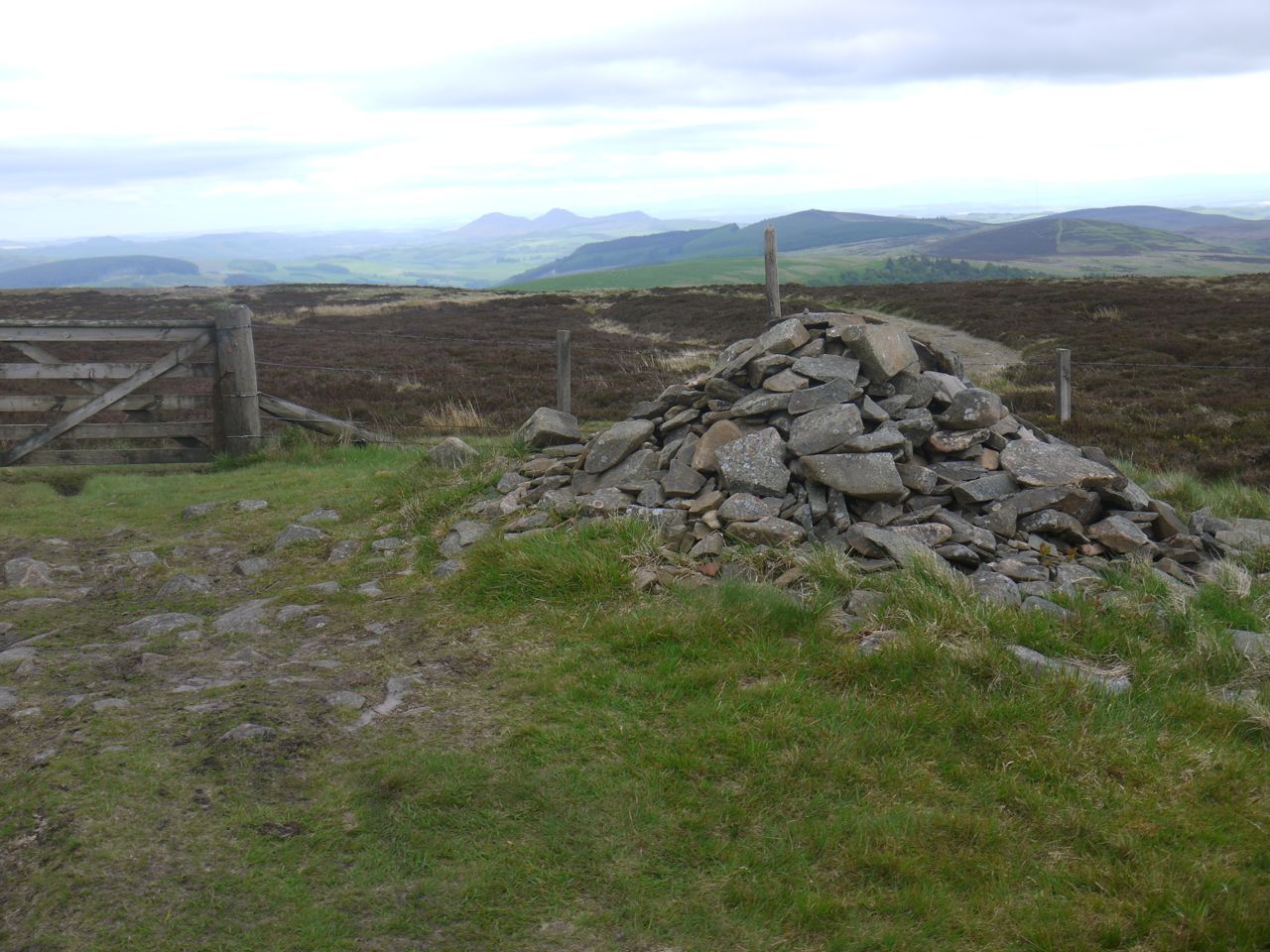 After the Well we had our first glimpse of the Eildon Hills, looking very far away and came to the highest point of this section at 520m. A path leaves the SUW/Old Drove Road here for the summit of Minch Moor, 570m away according to the sign. There is a bench here for the weary, or those who need time to decide which path to take. I had already decided it was time to walk the extra 1.14km and visit Minch Moor’s summit, so onwards and upwards it was.