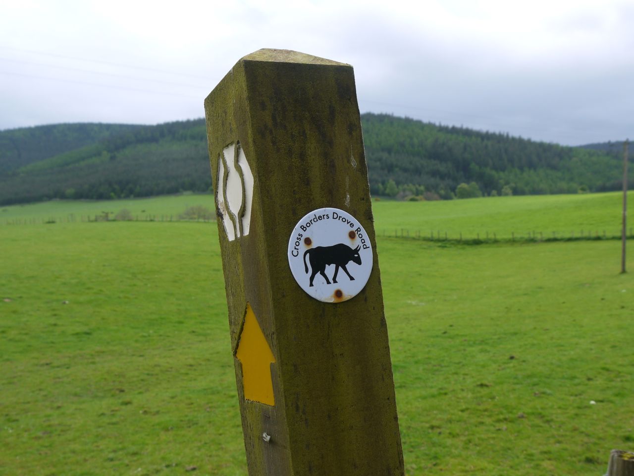 The views from here are of Elibank Forest and in the distance Windlestraw Law in the Moorfoot Hills. The next thing to find is the Cheese Well. It would be hard to miss this since there is an information board, explaining about the Old Drove Road, just bedside it. The board informed us that this was once the main route across southern Scotland.
