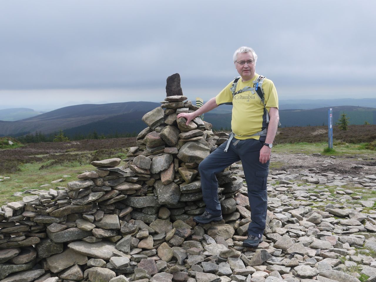 Minch Moor has a summit cairn which I think has been built up again in the last few years, there is also a mountain biking emergency information post. The views were pretty extensive but the horizon was hazy. It was a little breezy at the top so we didn’t hang about too long.