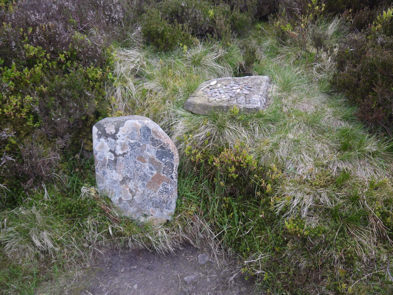 Just below the bothy the path passed through a stone wall with gate posts and a great many stones inscribed with (horse’s) names, as well as a few poems.
