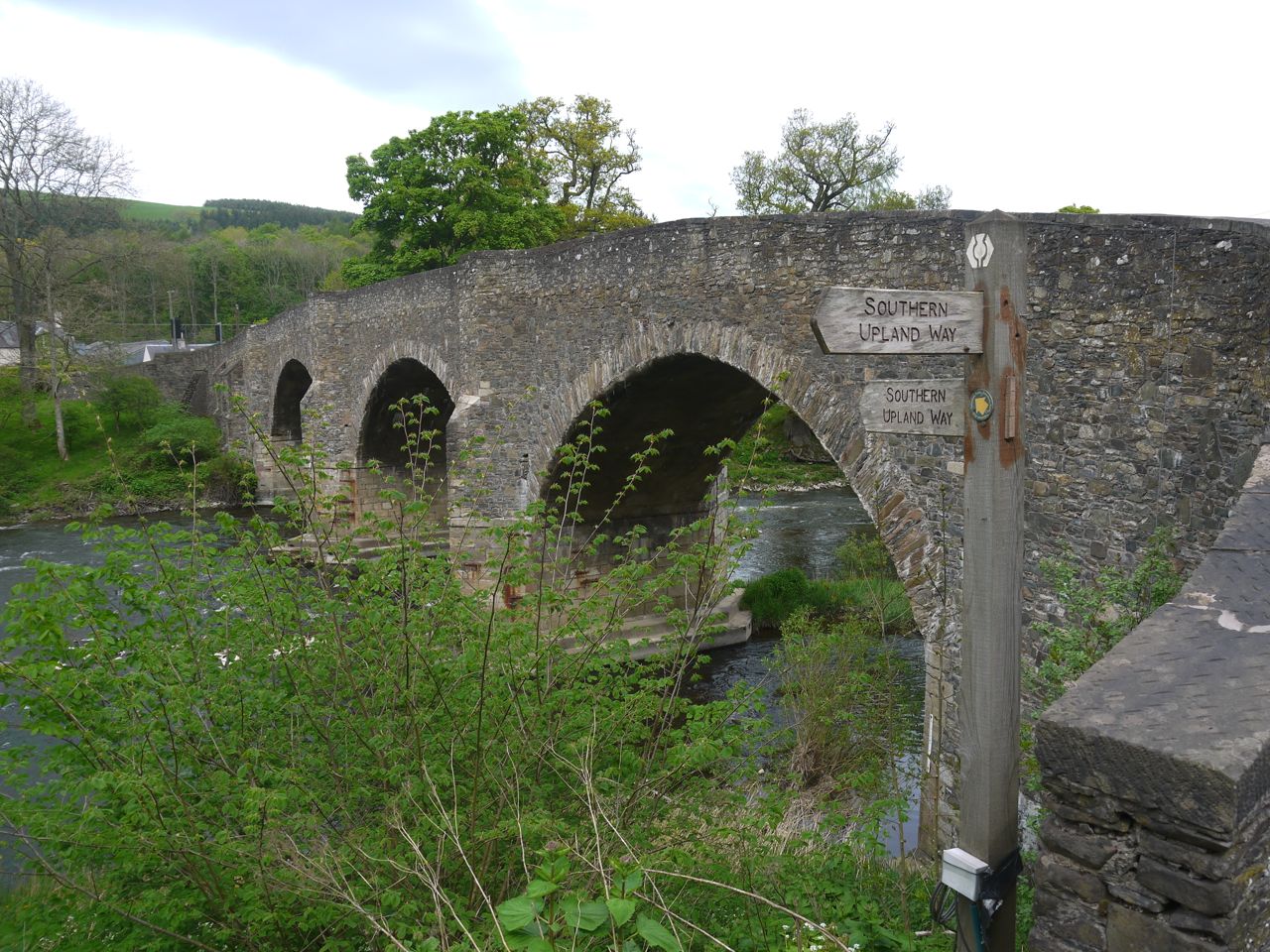 We then had a easy gradual downhill section through woodland with the sunshine glinting through. We passed a rusting derelict tractor in the grass and eventually reached the River Tweed which we crossed at Yair Bridge.