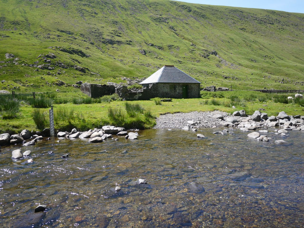 The Gameshope glen is well worth a visit with its steep sides, scree slopes, rocky outcrops, waterfalls and pools. Having just emerged from the mud and reached the rocky, and dry, track at the bothy I met a family in white trainers and advised against heading further up the valley.