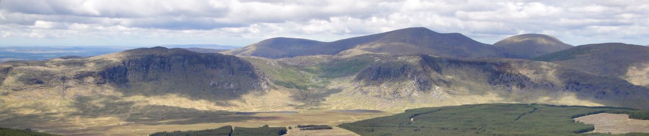 Craignaw and Dungeon hills, the Silver Flowe with the awful hand behind, from Milldown
