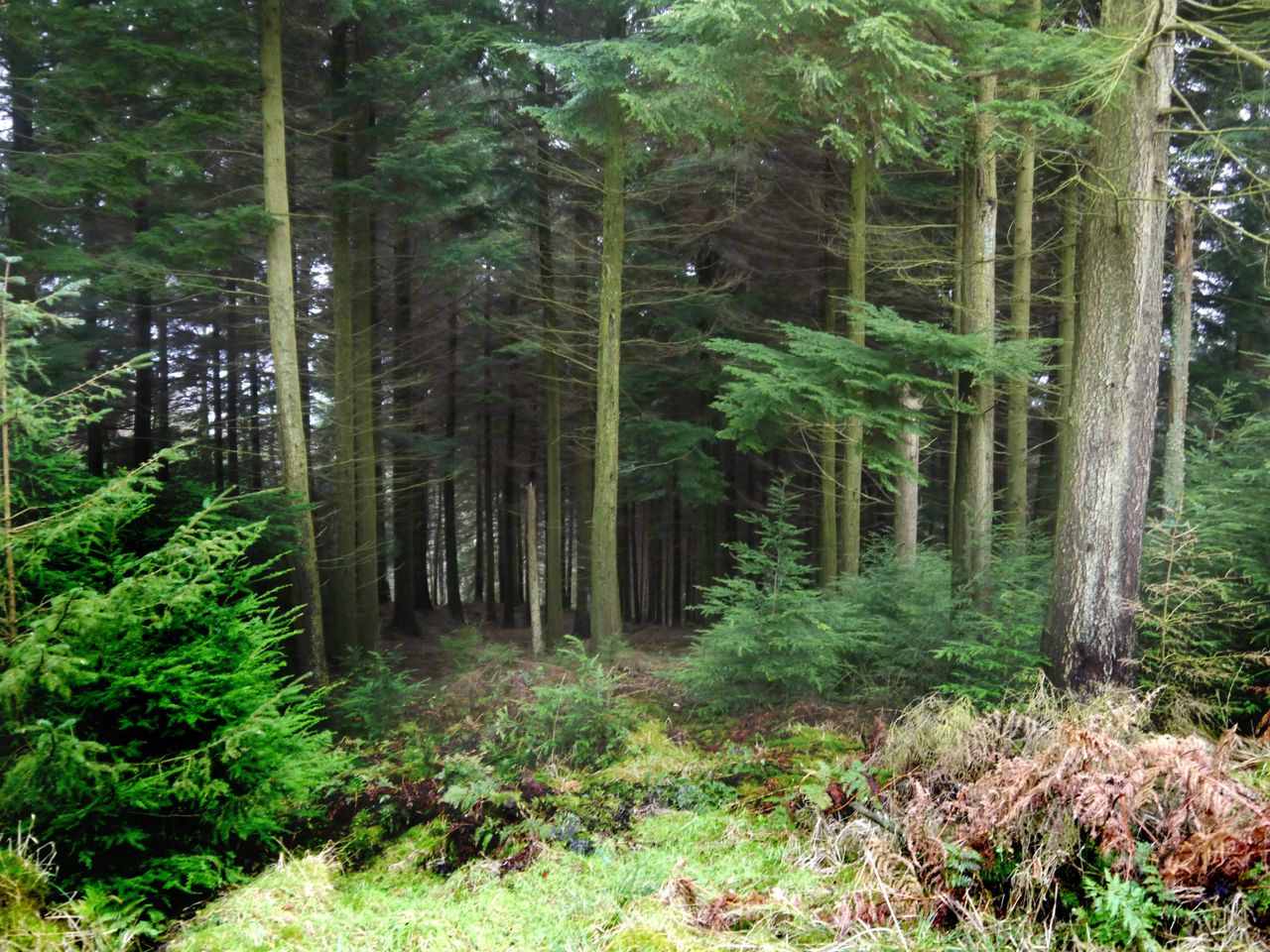 The last way marker we passed, set on a short piece of wood on the ground, had I presume been repositioned, whether by accident or malice I cannot tell. But rather than following the forestry track off to the left we continued along a less well maintained track. I suppose in retrospect it was just the track left by vehicles involved in felling.