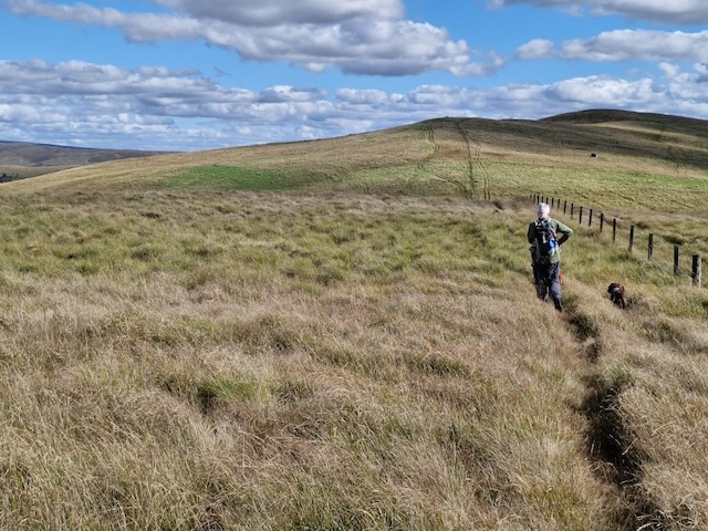 The stroll up Caulfield Rig took me back to my Donald bagging days. No obvious track, boggy ground hidden by tussocks and squidgy sphagnum moss.