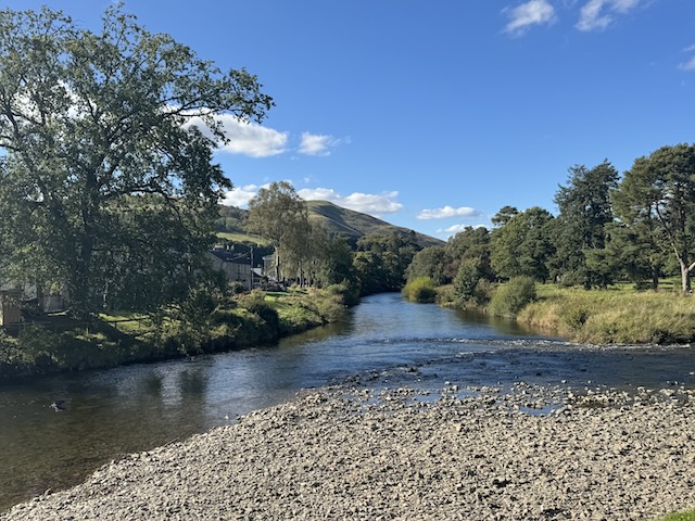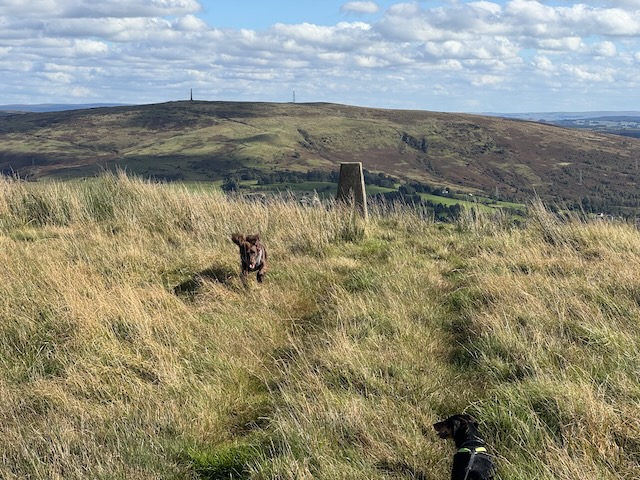 I found the descent into Langholm particularly trying. It wasn’t especially steep and the ground was fine but my back was really playing up. The dogs had to stay on their leads (there were sheep scattered here and there). I wondered if I was leaning back more than usual, tried adjusting my rucksack to no avail but the following day I was aching all over, including parts I wouldn’t expect to be made worse by walking (the finger that was broken a decade ago). So I am now blaming the symptoms on the flu jab I’d had the day before.