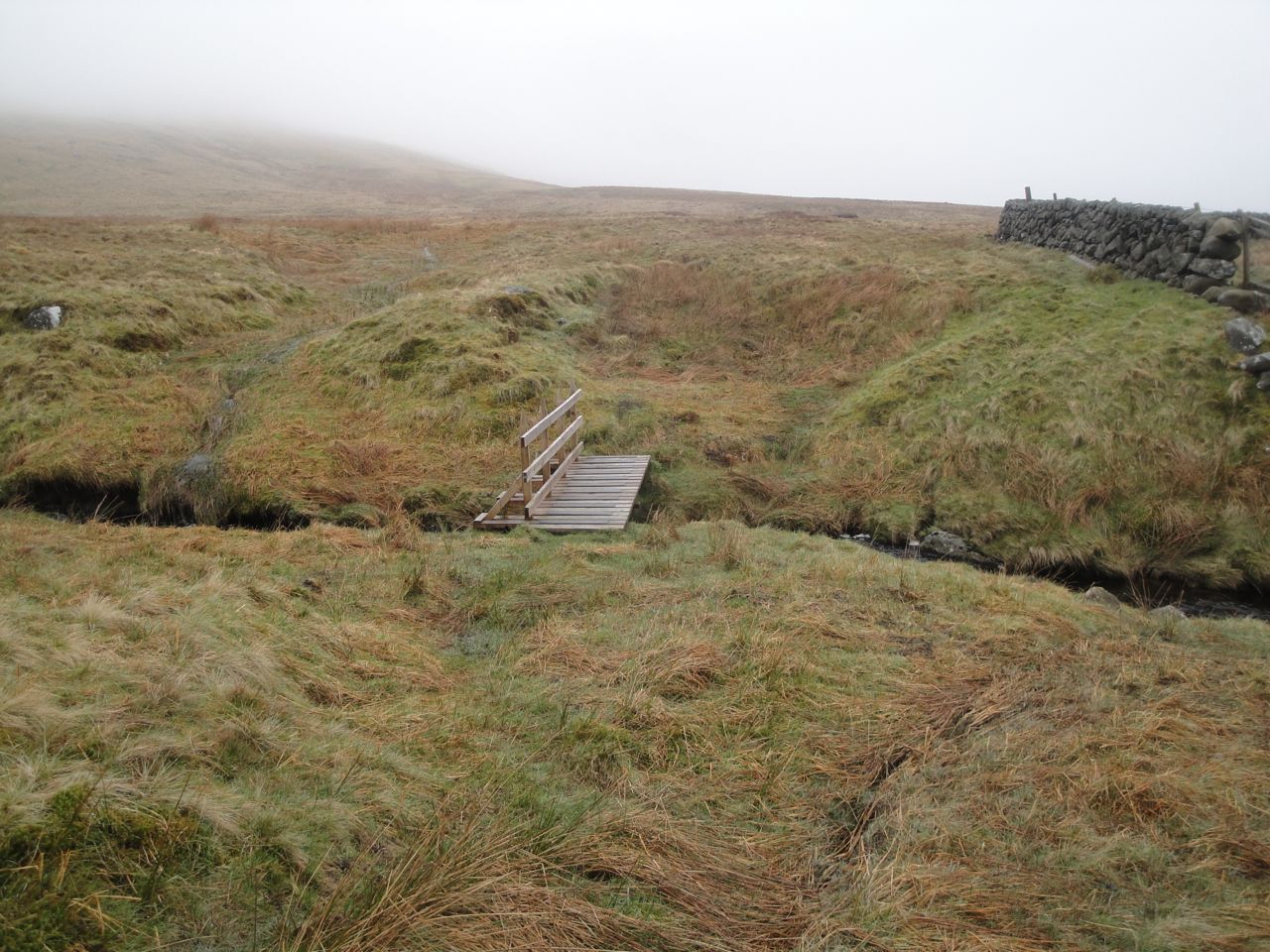 I was pleasantly surprised to find another new bridge, this one over the black waters of the Polsue Burn. Having spared my feet a dunking at the burn I then had to cross a section of semi-submerged sphagnum moss to do what the burn might otherwise have done.