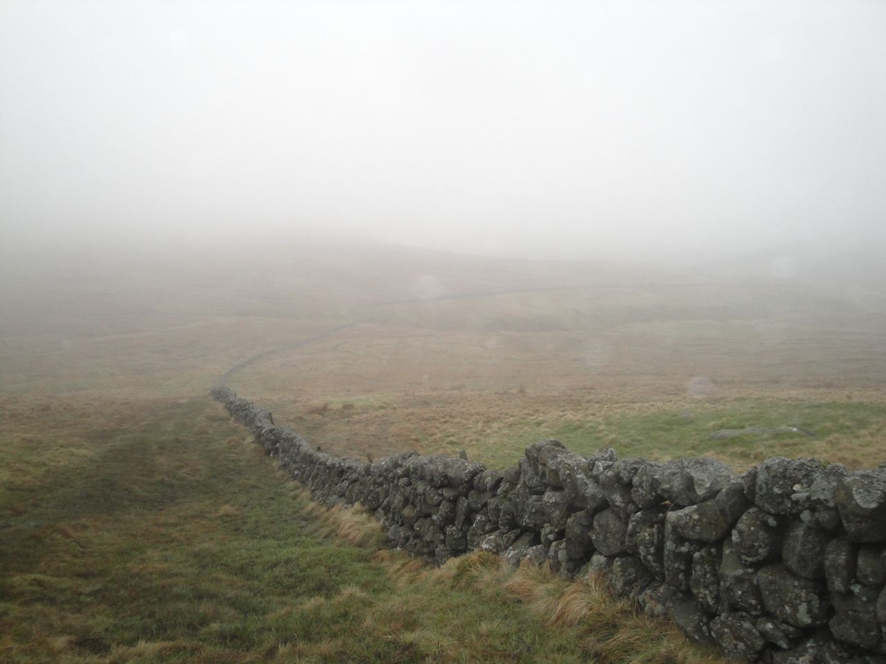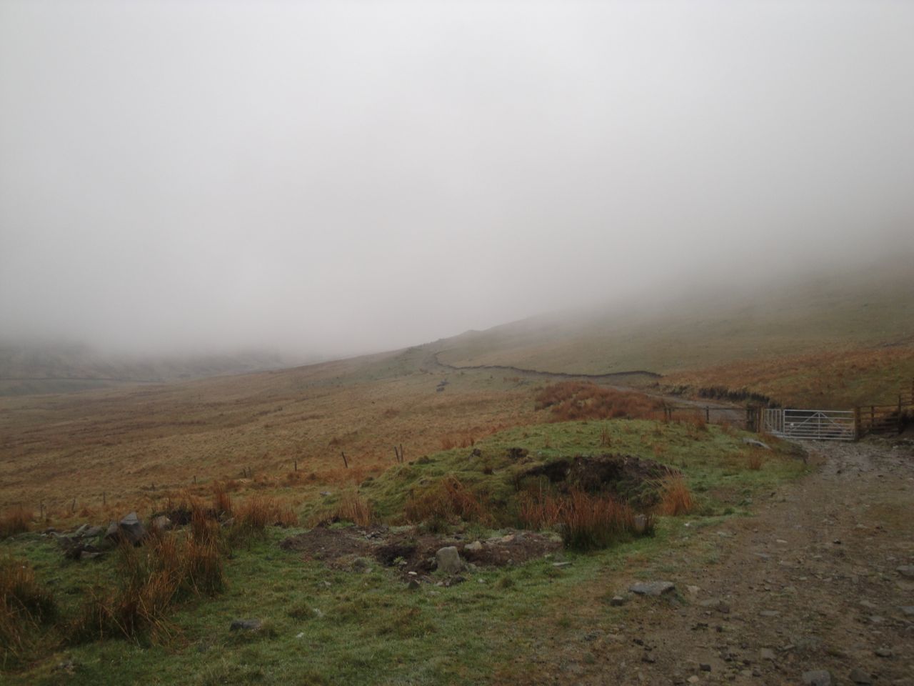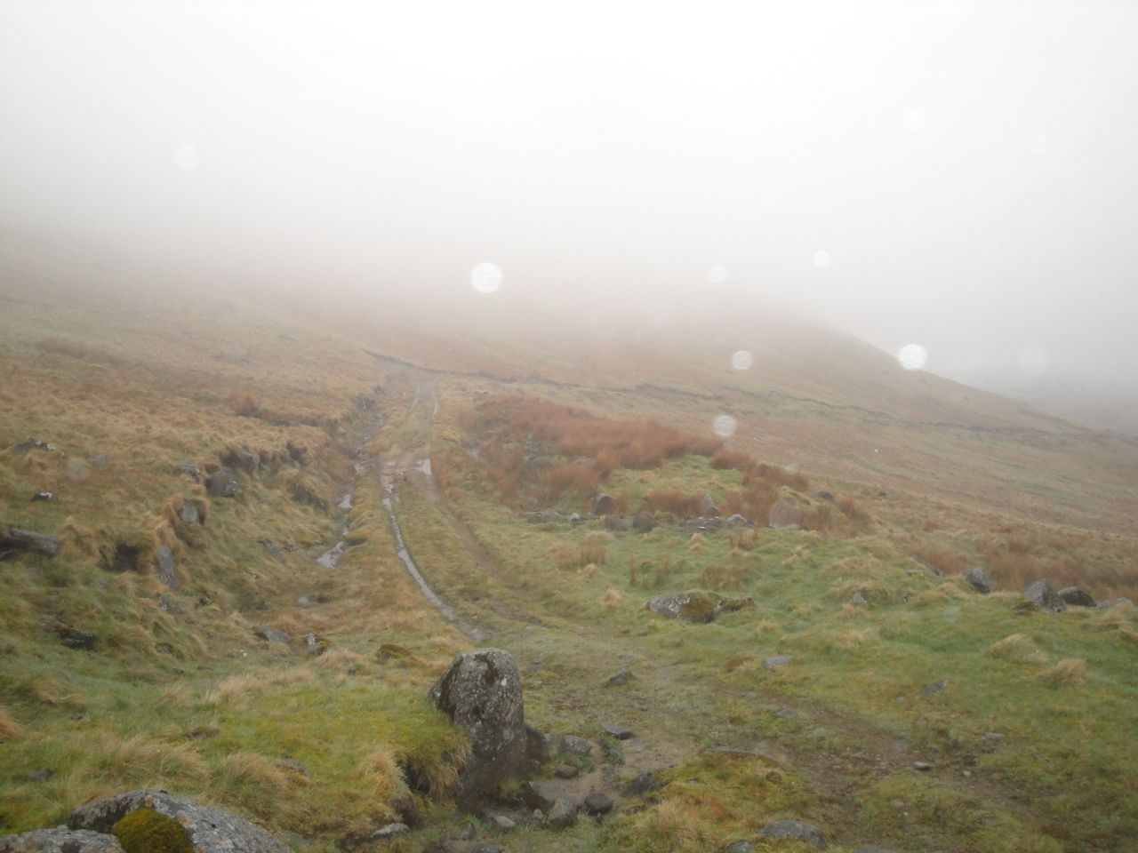Throughout this walk I had had the sensation of rain falling on my face, my jacket was damp and my hair was wet enough to drip on the map holder when I looked at it, but any pools of water I saw were still, so I presume the water was precipitating on to me directly from the cloud.