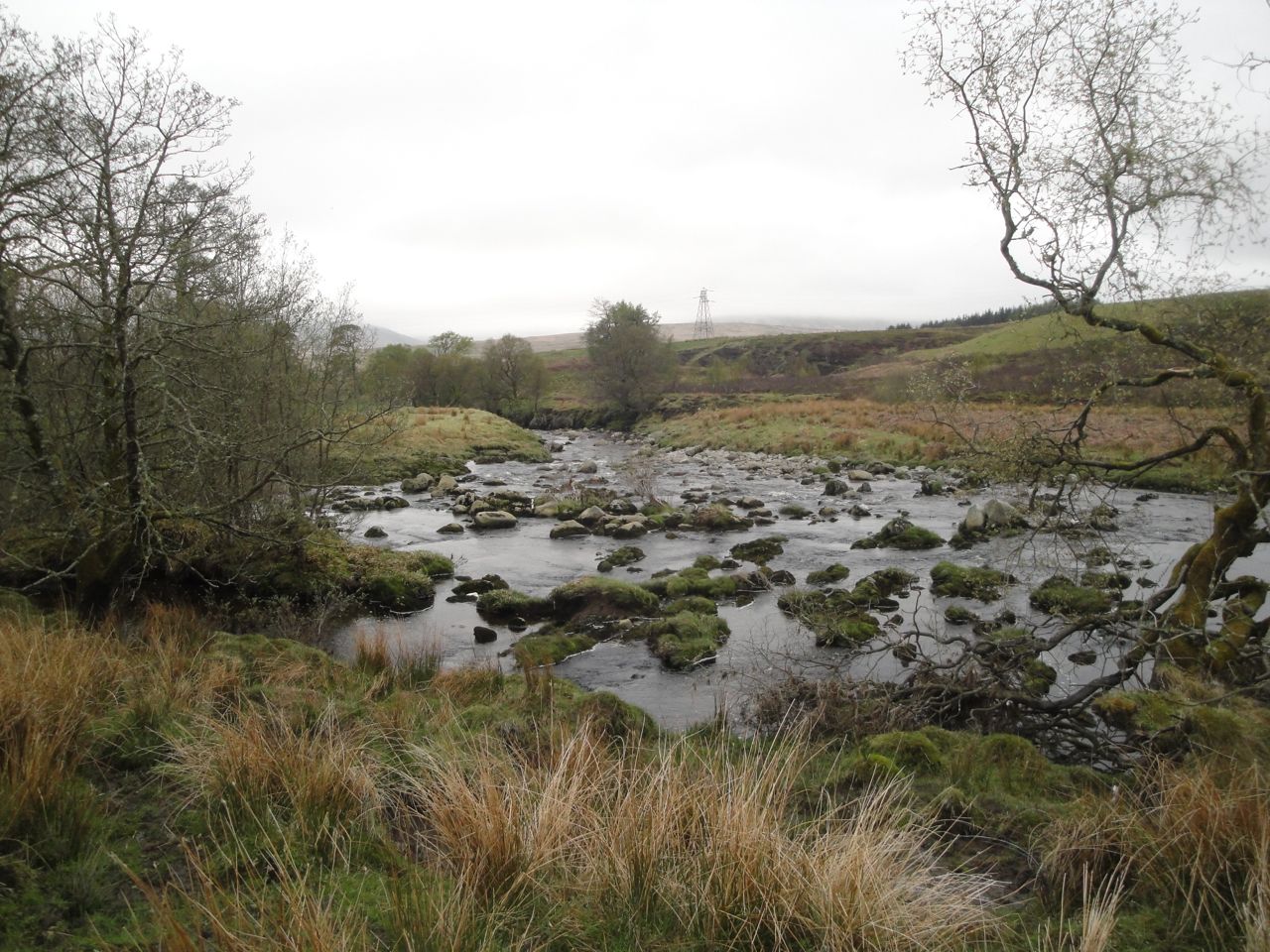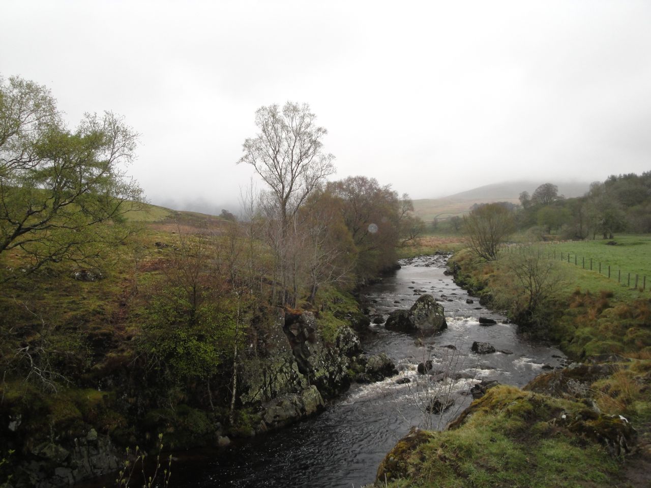 The farm track runs alongside the Water of Deugh past first one barn and then another. The track by the second barn disappeared into a quagmire of mud, showing evidence of bovine activity, both hoof and bowel. I had previously passed this way and based on my previous experience had intended sticking by the fence rather than continuing along the track. I should have stuck with that plan.