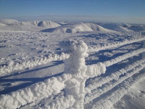 The fences at the summit were covered in snow as you will see in the gallery and though these look like wooden fences covered in snow, they are in fact wire fences.