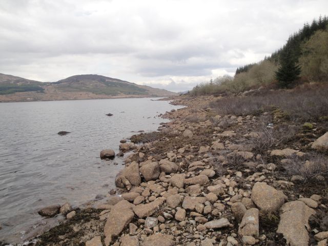 How you would ever find this forest break if coming the other way, I do not know. It is two burns beyond Portmark and just short of a large boulder on the shore.