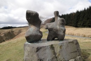 Just past the beware red squirrel sign we saw a red squirrel dart across the road. Then we walked along the reservoir with greylag geese (these I do know), more pink farms, several Henry Moore sculptures (king and queen, Glenkiln cross, standing figure), and Rodin’s John the Baptist.