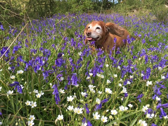 I only remember him fetching a ball when he was very old. He died a few days before his sixteenth birthday. His photograph, running through bluebells, was on my wall at work.