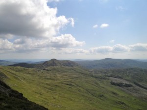 As I got closer to Curleywee I began to have some misgivings. It did look steep and was surrounded by scree slopes. I’d come this far, done two Donalds, perhaps I should come another day, by a different route? No I was here now, but how to get up. There was grass between the scree, should I take that? Or go round and have a look around the side? There was no obvious beaten track.