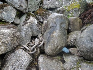 My first stop was the ruined buildings of Little Cullendoch, only a hundred metres or so from the car park. The ruins contain a strange sculpture that looks like a chained head stabbed in the neck. Somewhat gruesome, but perhaps there is another interpretation.