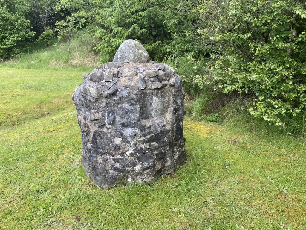 A cairn by the car-park has a plaque reading “John McDonald died here 1878”. I could not find much about the chap other than a post on the GlebeBlog explaining he was a ganging-body who had died by the old Brockloch Bridge. When the bridge was replaced in the 1970s the present memorial was built to house the plaque that had been on the original bridge. The blog explains that a ganging-body was an itinerant worker, though the Scots Dialect Dictionary gives the meaning as a beggar, tramp, or vagrant.