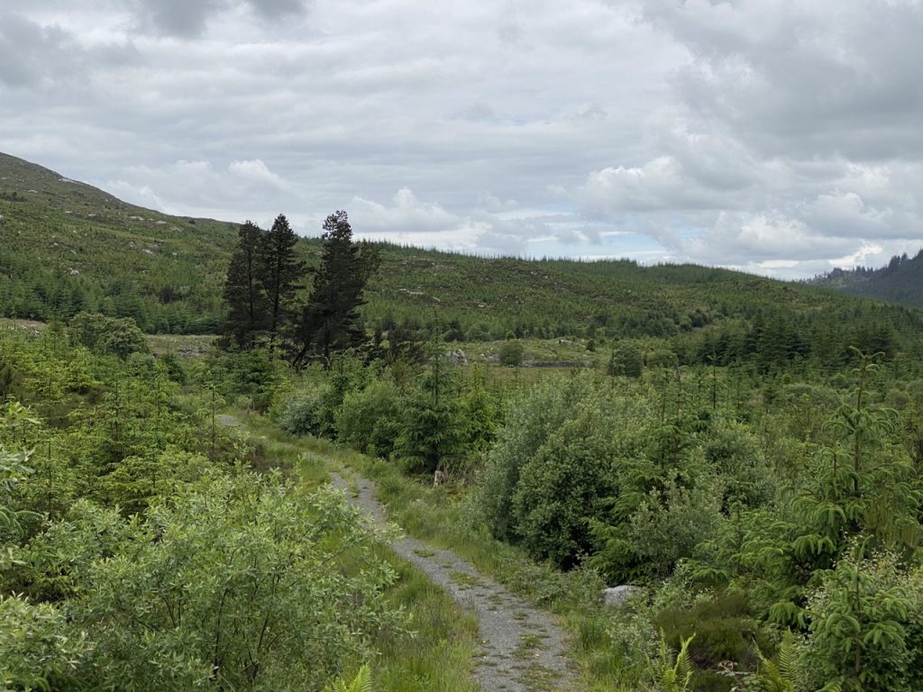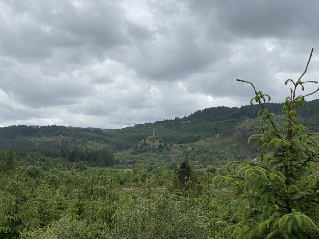 Yet another Galloway Forest Walk. From the car park at the easily overlooked Brockloch Bridge, along to the Red Deer Range, up the forestry track to High Craigeazle, from where you can see the three Cairnsmores. Then the track and wee footpath to the ruins of Dunkitterick Cottage. An easy enough stroll but with 1000 feet of ascent.