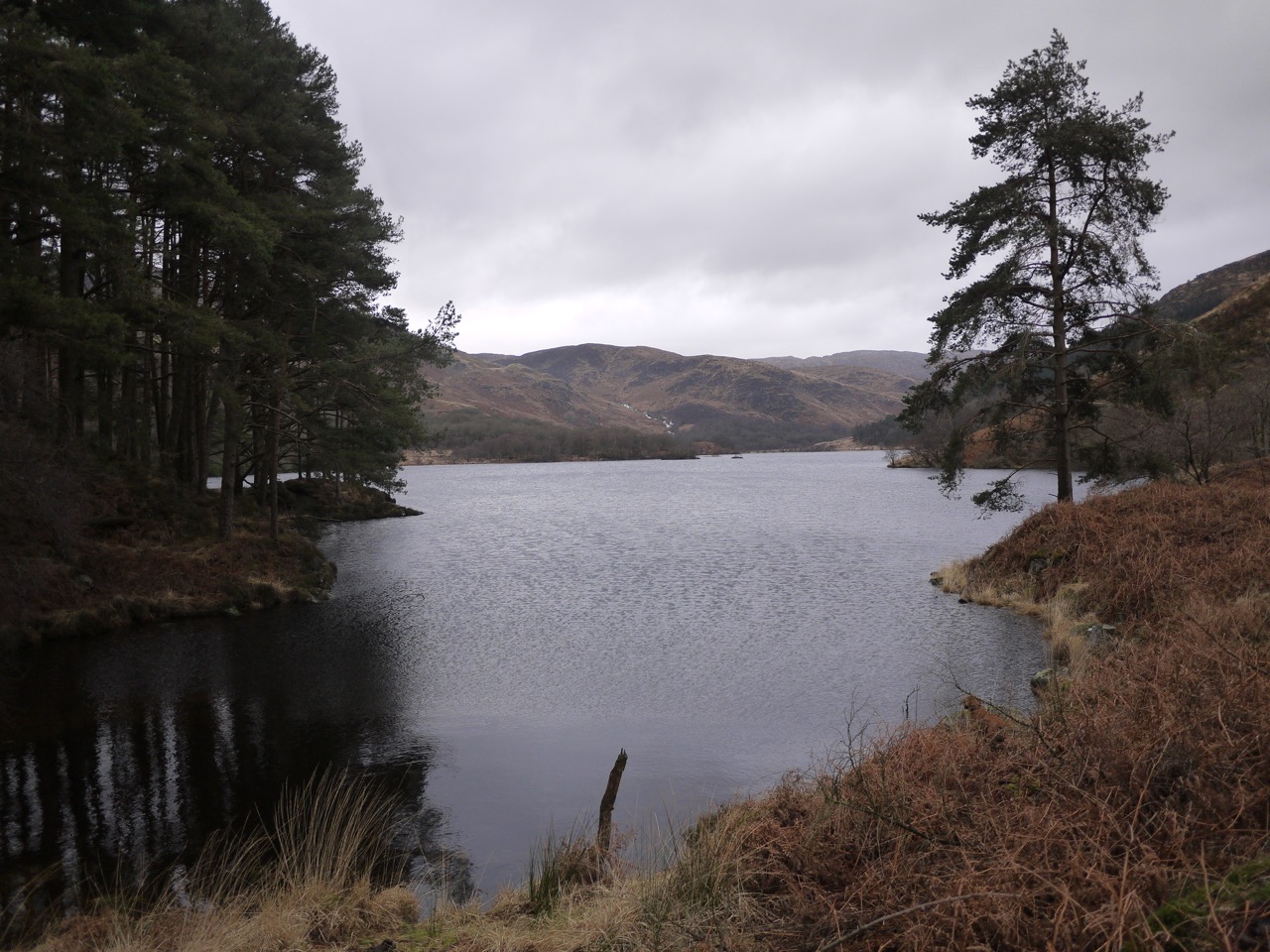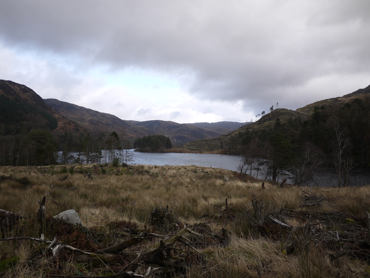 A small knoll close to the eastern end of the loch had what appeared to be a circle of stones, but I cannot find any record of a stone circle here so presumably these are just boulders that happen to look like a circle rather than a man-made artefact. (Edit: It looks as if this might have been the ruins of Ferrachbae, yet another name involving a tree, the trysting place of the birches, bey.)