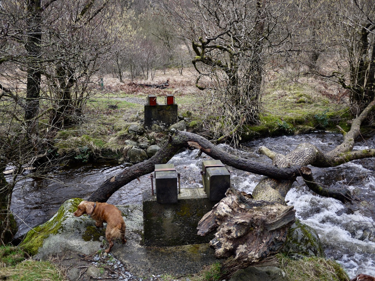 The small footbridge at Glenhead is no longer there, but a twisting tree trunk crosses the water for the more adventurous explorer. I would have used it but what with my dodgy knee I decided to walk the extra hundred yards to the vehicle bridge.