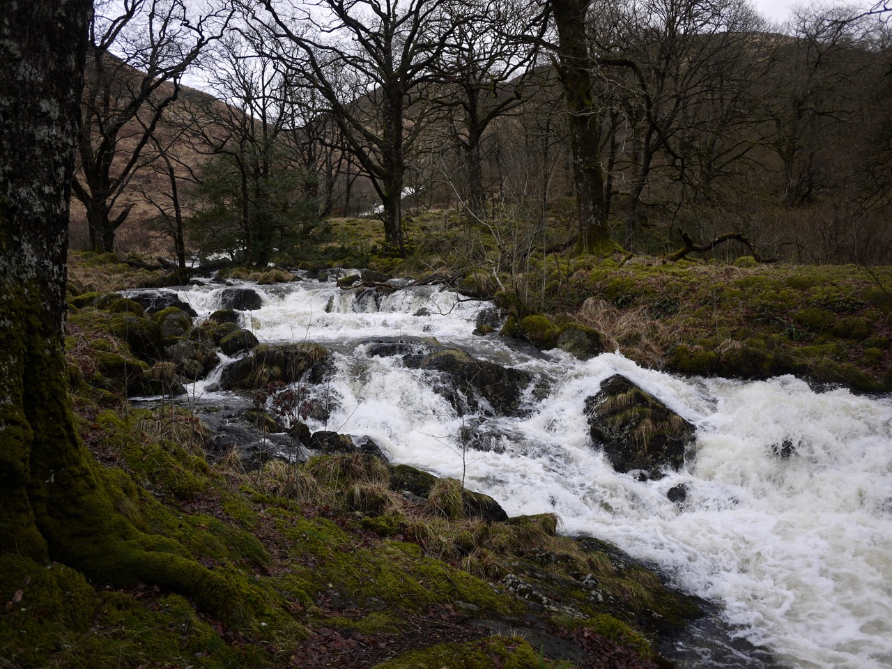 We could see the Gairland Burn in spate from early in the walk, white against the brown of the hills, and once we reached it it was truly roaring.