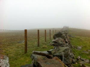There is a shoulder of Gana Hill called Gana Shank and here I found a gate in an adjoining fence. On the other side was a wide track. This wasn’t marked on the map and given the mist I couldn’t see where it went but it did look to be descending so I left it. Once back I had a look at Google Earth and the path runs between Gana Shank and Gana Hill.