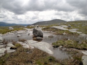 The descent of Mullwharchar was easier than ascent but we now had problems slipping on the wet grass and underlying mud. Much “ooh”ing and sudden flailing of arms was done.