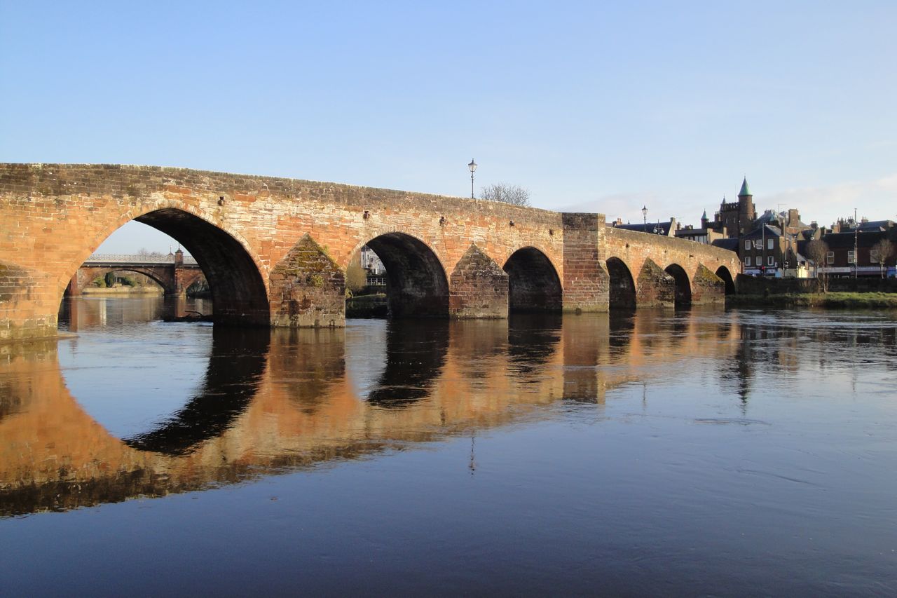 A beautiful crisp cold day with blue skies. I thought it would be appropriate to start this walk somewhere historic so I walked into town, passing the McGowan Memorial Fountain, and crossed the Auld Brig (Devorgilla Bridge). The original bridge here was built in 1260 by Lady Devorgilla, the stone bridge replacing it two centuries later. On the riverbank is a life-size relief of Devorgilla of Galloway, one of the most powerful women of the age, and 4great-grand-daughter of William the Conqueror.
