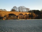 The Cluden itself is a pretty river (see the picture above), and though there was no sign of Mole, Ratty or Toad, there were plenty of ducks, geese, some rabbits and even a heron. The OS map shows a path along the Cluden, but it is more in the mind than on the ground; perhaps it’s just a right of way. There were well maintained stiles on the farmland but at the old ford near Hardlawbank, the stiles are overgrown and festooned in barbed wire, requiring a bit of a diversion. Further along the bank there are some houses whose gardens I suspect contain the right of way but it seemed impolite to climb into their gardens. As it was I found myself edging along a rather narrow steep overgrown muddy area between the gardens and the water. It would probably be better to take to the adjacent road and rejoin the riverbank 100m further on, especially if it has been raining or the river is high. The section between said cottages and Newbridge has a good stile over the fence (thank you, farmer). Across the river is a large house that I presume is Dalawoodie House. Once I had crossed the A76 I was in Newbridge, where I joined what once was the old route of Glasgow road and crossed the new bridge (built 1759).