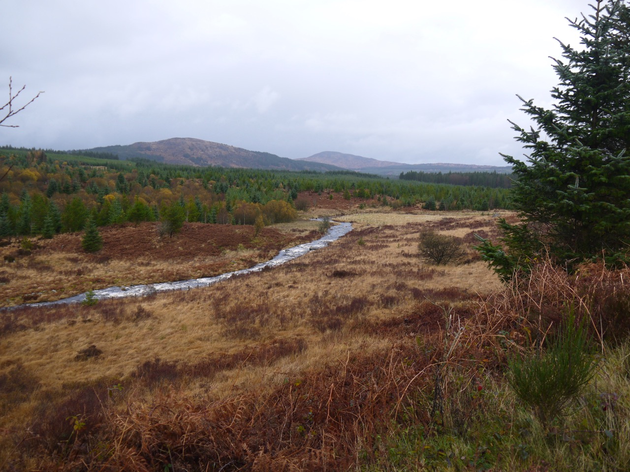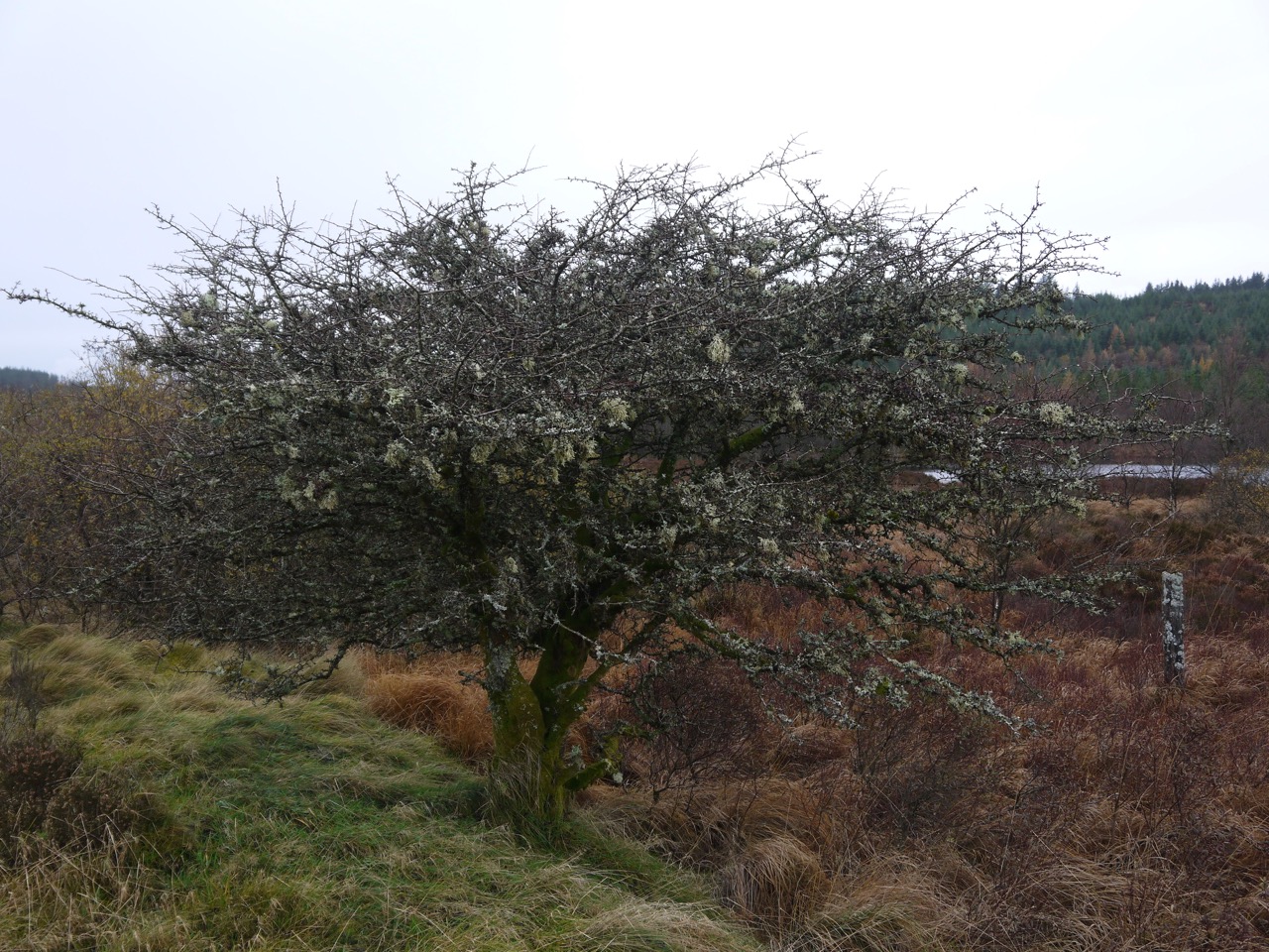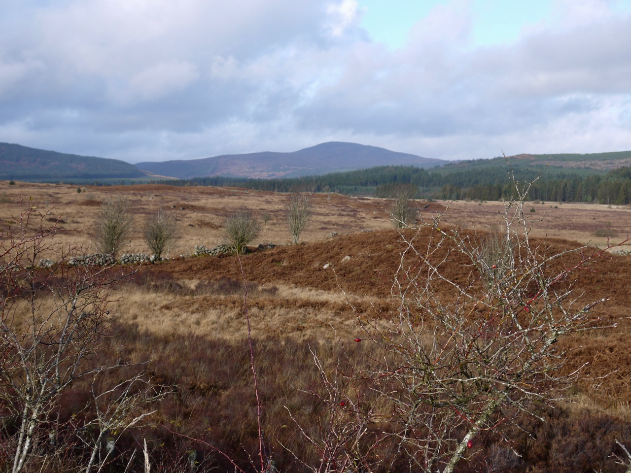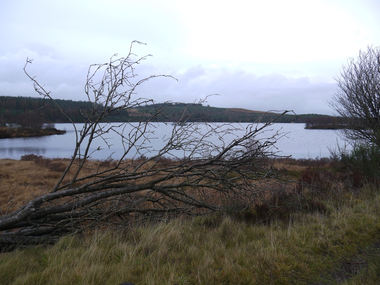 Loch Skerrow itself would originally have been Loch Sceireach, the rocky lake. It has several small islands, some with trees, others just rocks. A “moat” of bog kept us from its edges. I recalled that there were geese when I was here a few years ago, but we had not seen a single bird the whole day and the loch’s waters were stirred only by the wind.