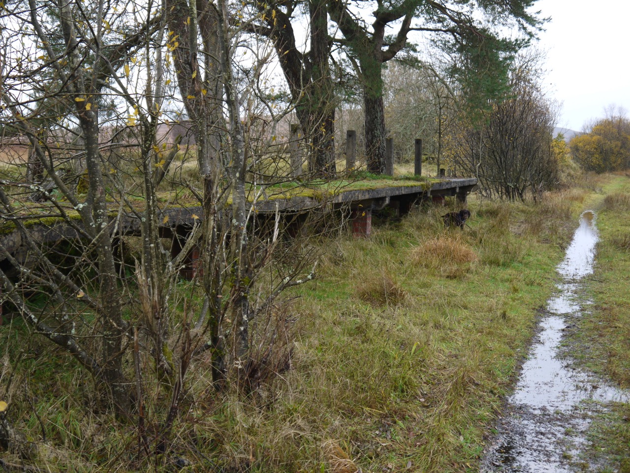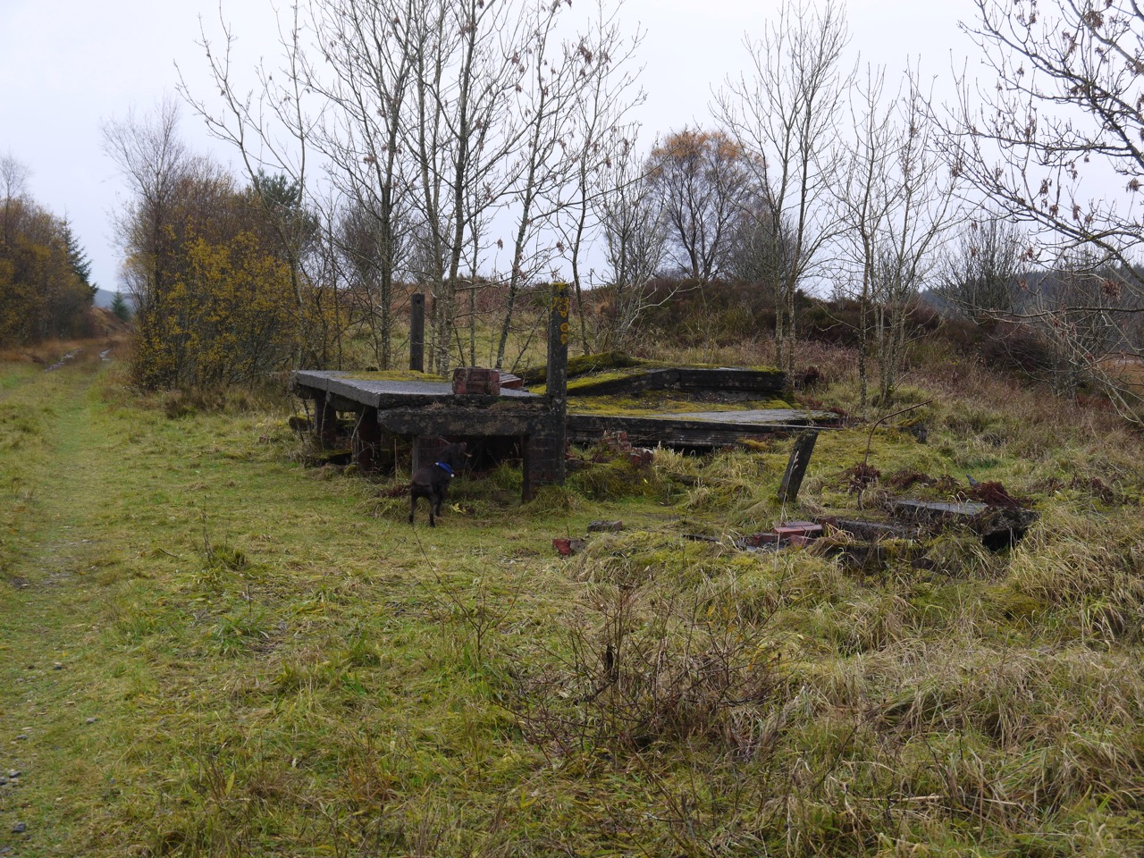 The rain did take a break as we came into the ruins of Skerrow Halt so we could wander about in a little more comfort. When the railway line opened in 1861, Loch Skerrow Halt was constructed as a water stop for the steam locomotives. There was a plentiful supply of water available, and water tanks and a pumping station were built. There is a line on the internet which reads “The station was one of the most remote and isolated points on the line. None save the stationmaster and possibly a railway worker or two inhabited this lonely place unconnected to any other habitation except by the line itself.”
