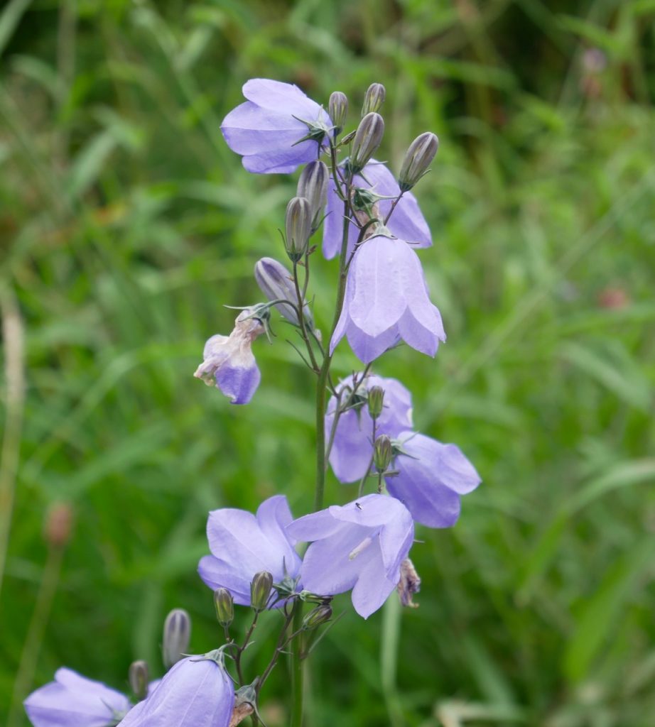 The hedgerows were a delight of wildflowers with meadowsweet (sniffed to rule out anosmia), hare-bells (photographed because they are pretty), sneezewort (looking like bleached ragwort) real ragwort. Yarrow, lady’s bedstraw, orchids, wild valerian, spearwort (that I almost missed), St John’s wort, ragged robin (said to be common but I rarely see it), marsh thistle and creeping thistles (that I often confuse), clovers and cleavers, hemp-nettle (mistaken for dead nettle at first), yellow toadflax and willow-herb, small and large. Plenty of others though, noticeably, no daisies.