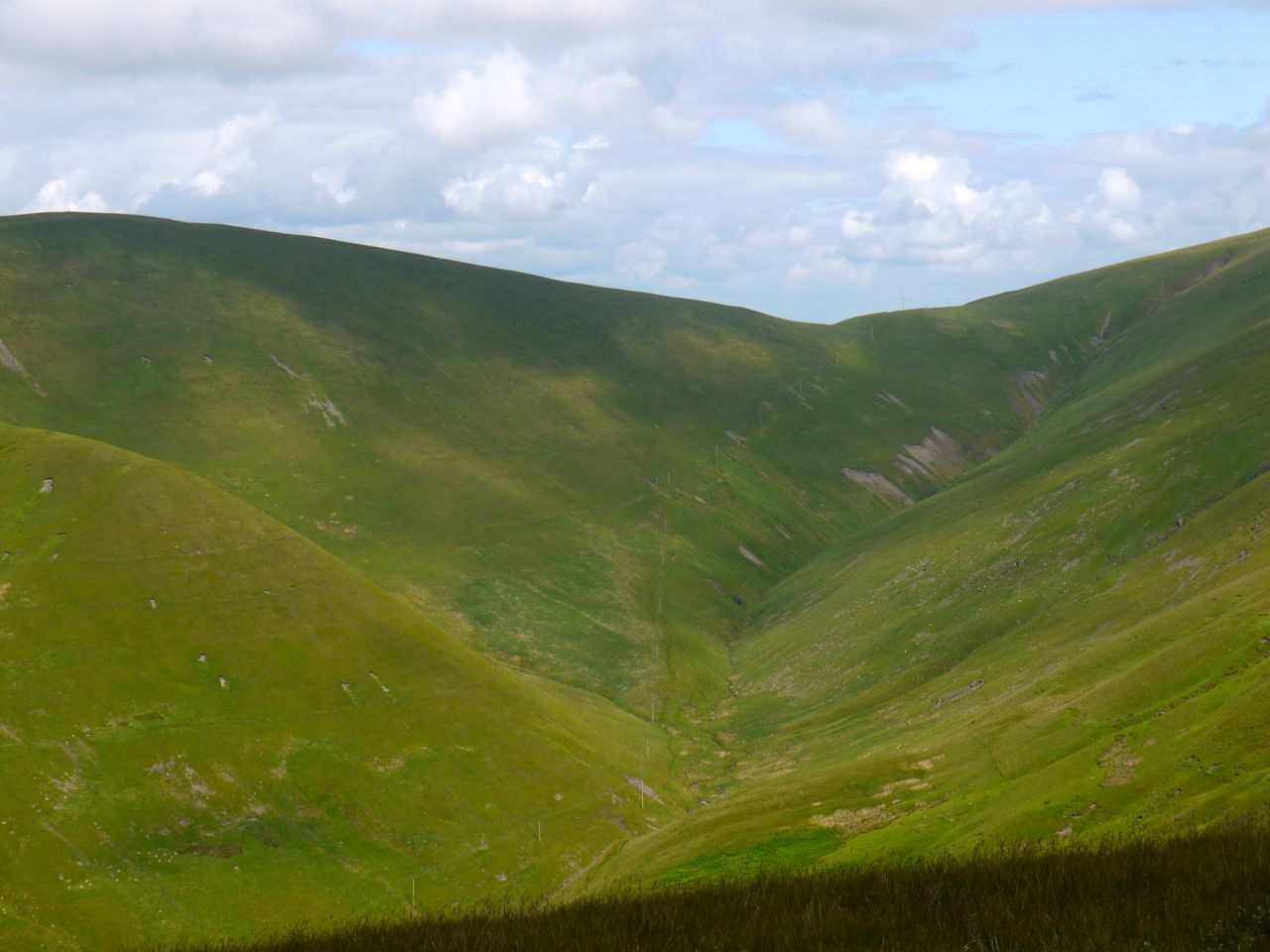 The downside of this way down is that it goes down to Enterkin Pass and requires a 100m climb back out over the Dalveen Rig-Nether Dalveen Dod col. There is however a gravel track that zig-zags up the hill.
