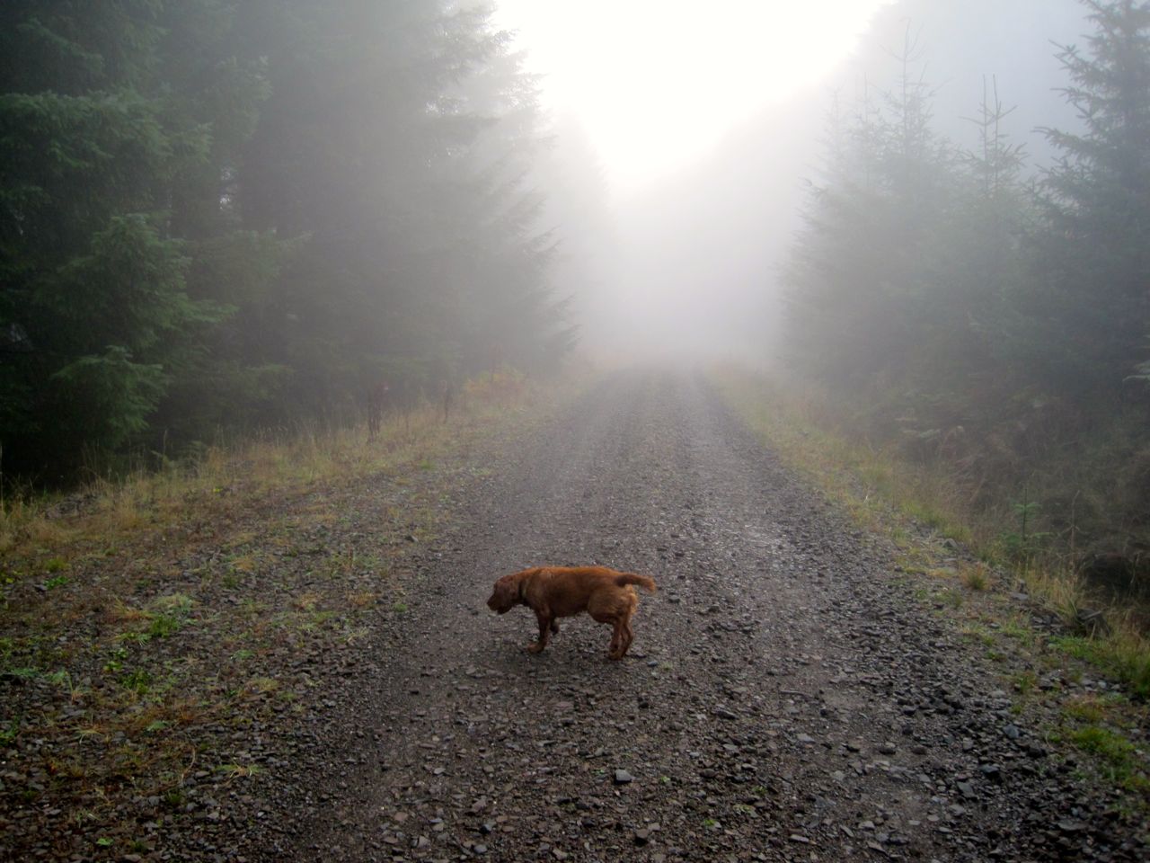 IMG_0711By now the mist was gone and the sun shining on the Moffat hills. Eddie had a good time jumping through the bracken, and luckily he didn’t notice the deer on the track ahead of us.