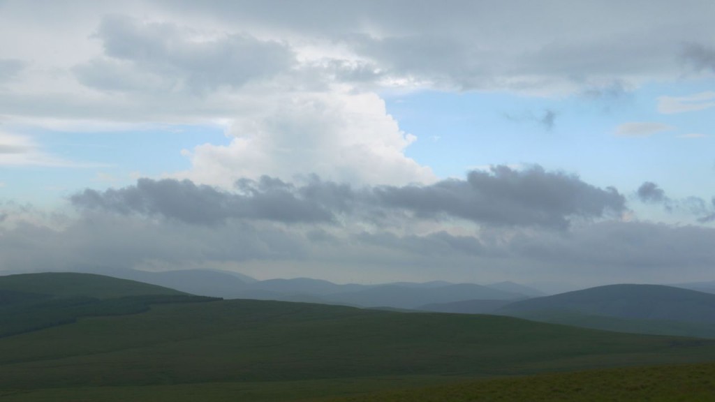 I had decided to stray from the Annandale Way a little to take in the top of the Great Hill and get better views. Unfortunately the views both north and south were soon obscured by rain, though it took another hour to reach me.